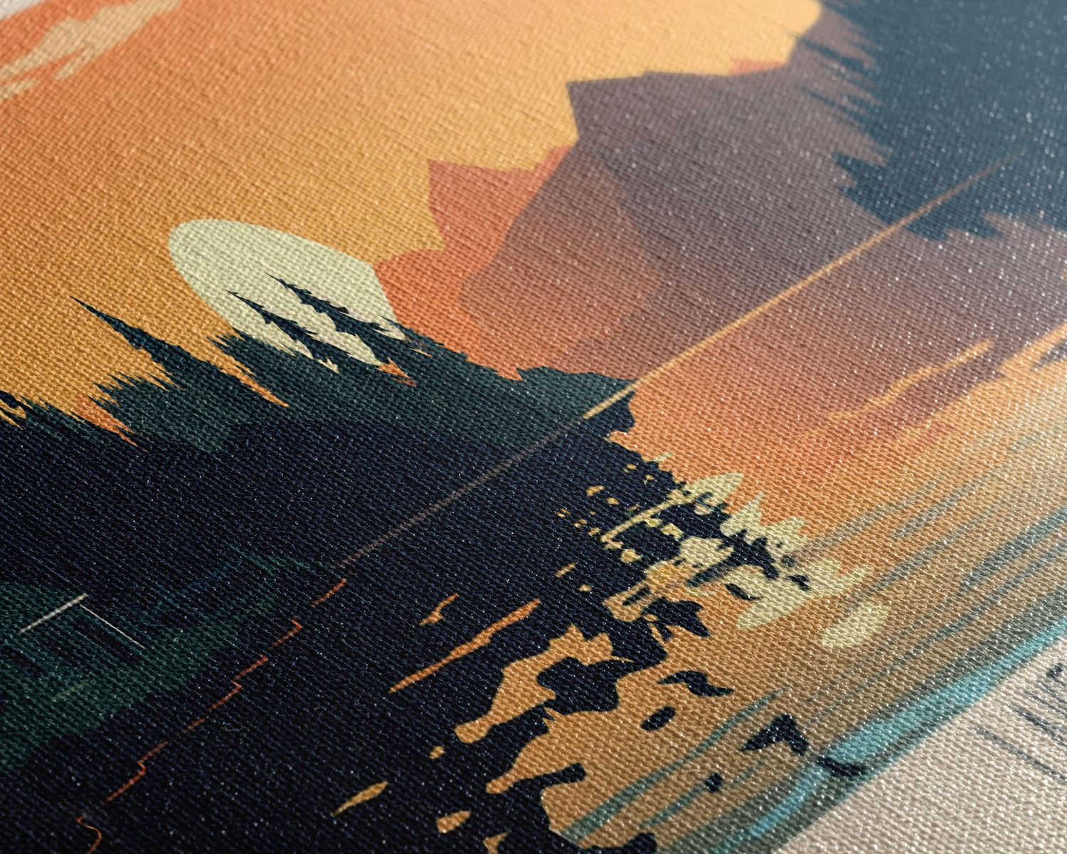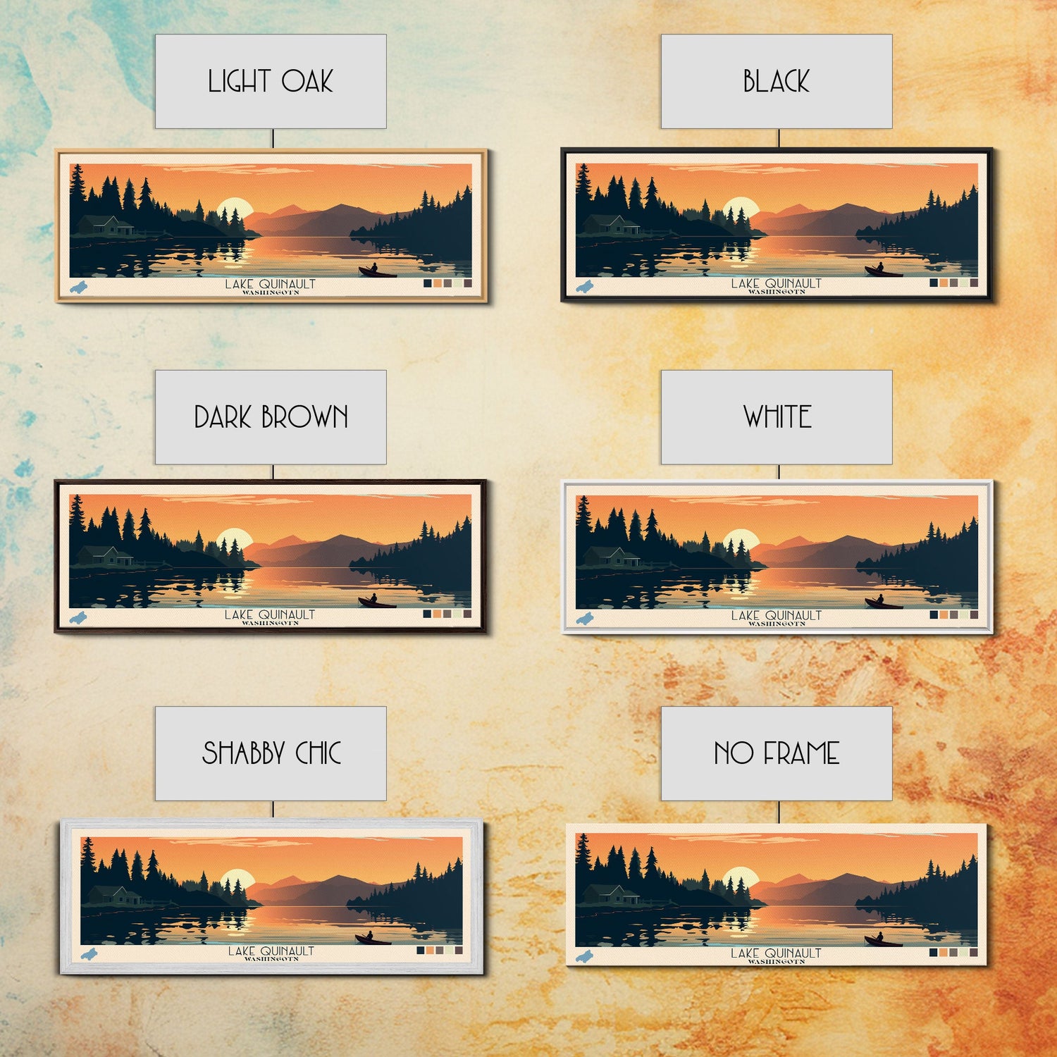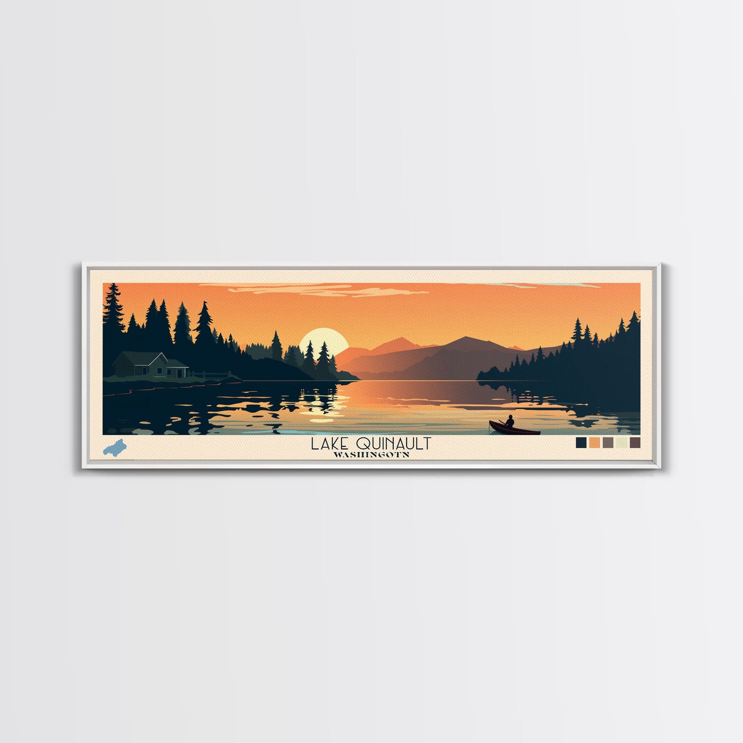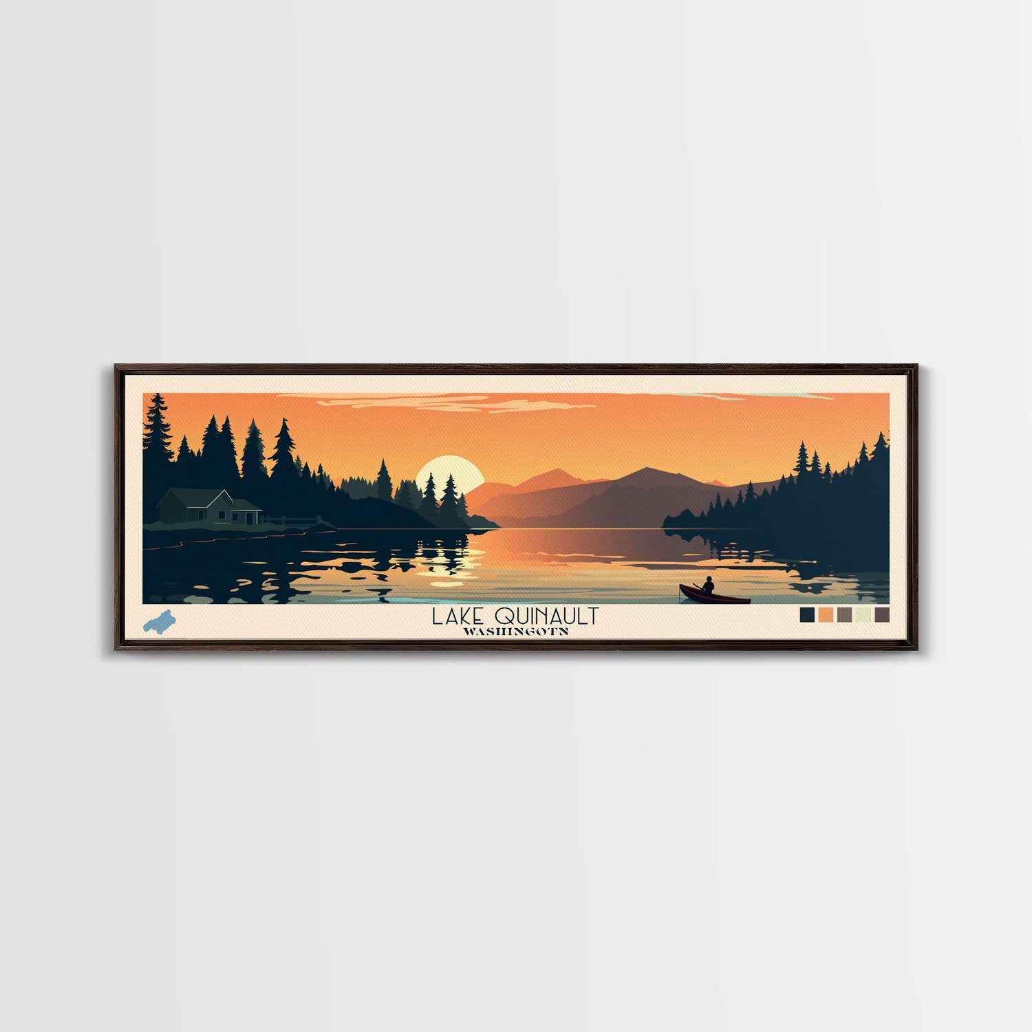 Lake Quinault Washington Framed Canvas Print, Panoramic Wall Art, Midcentury Modern, Pop Art, Living Room Decor, Travel Poster, Lake House Art