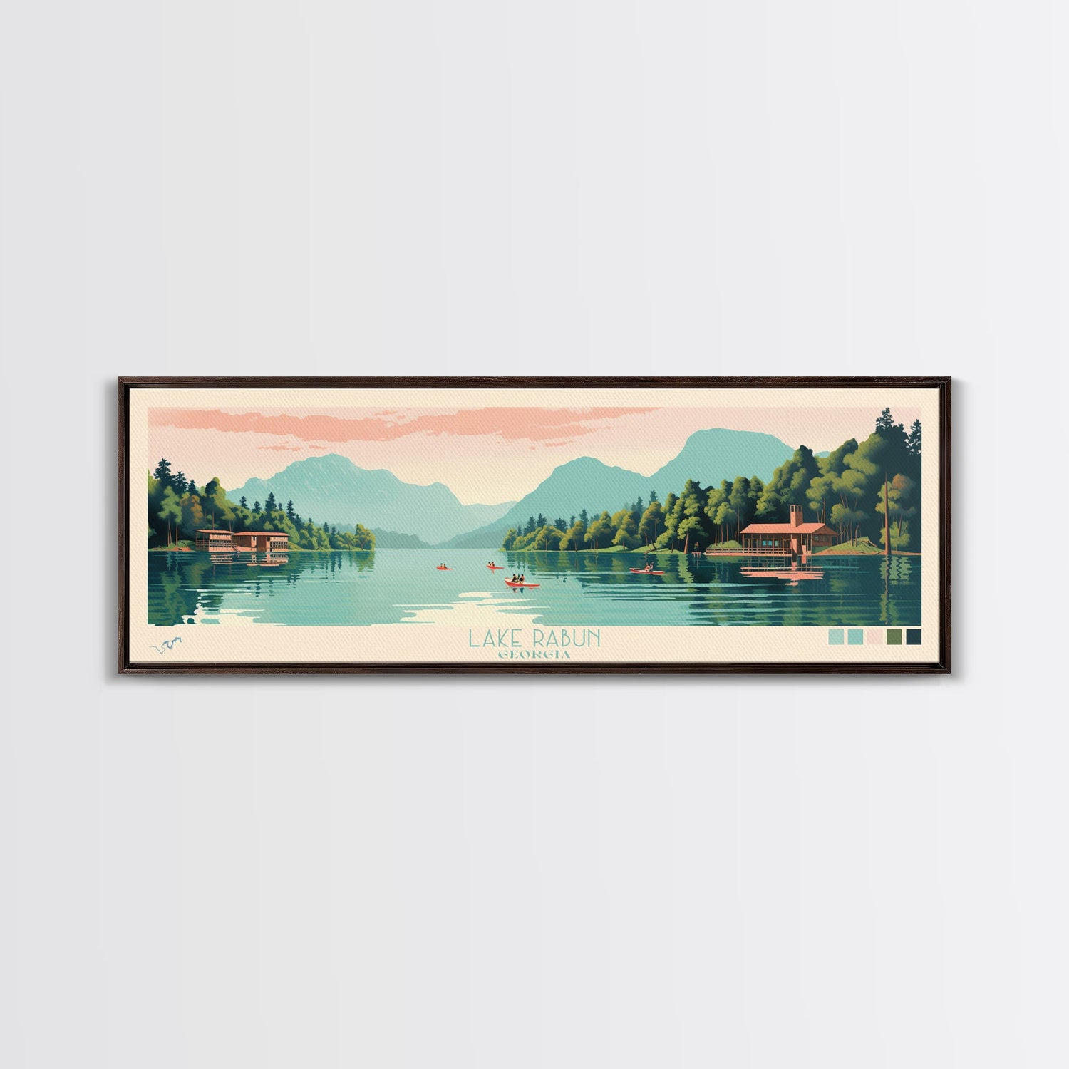 Lake Rabun Georgia Framed Canvas Print, Panoramic Wall Art, Midcentury Modern, Pop Art, Bedroom Art, Travel Poster, Lake House Decor
