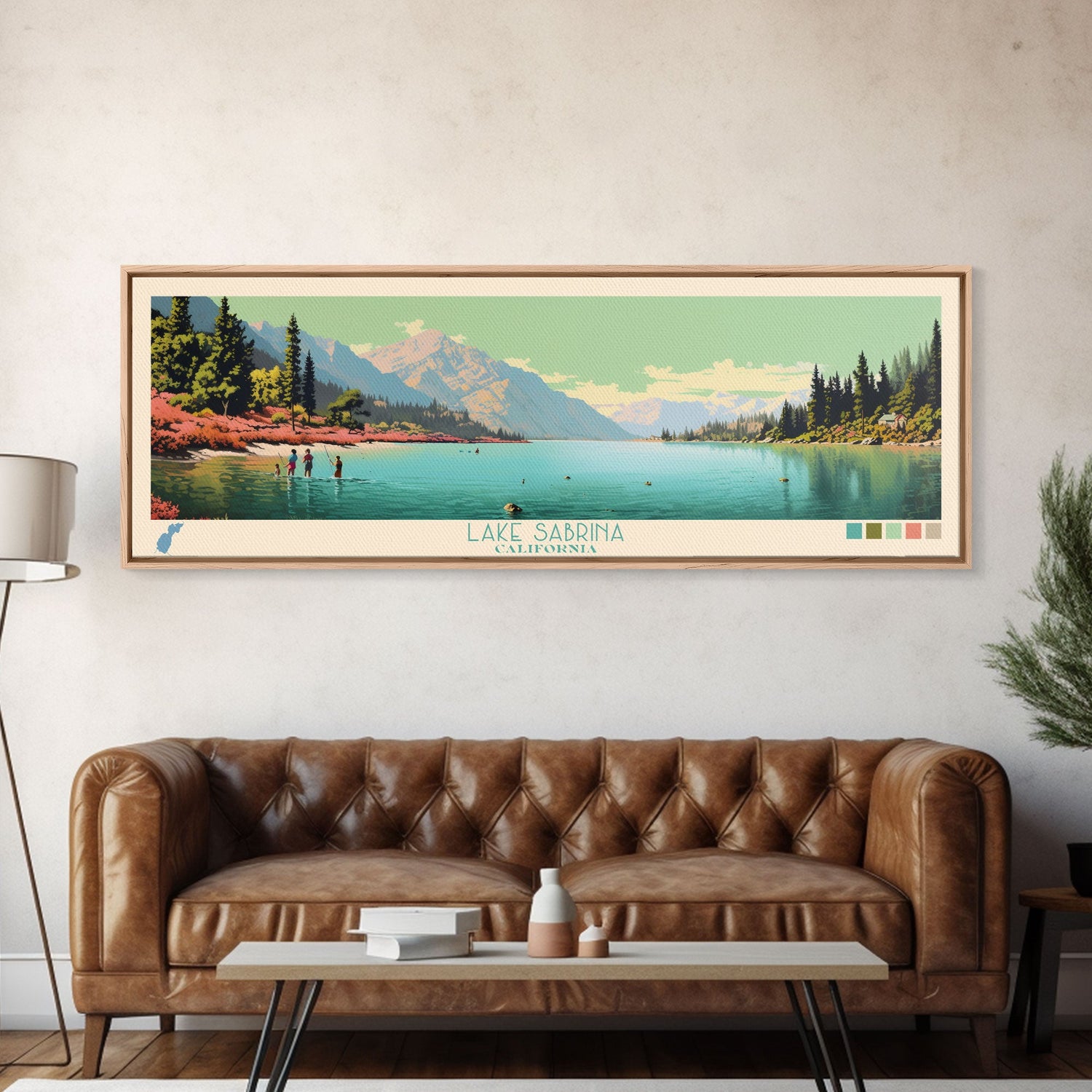 Lake Sabrina California Framed Canvas Print, Panoramic Wall Art, Midcentury Modern, Pop Art, Bedroom Art, Travel Poster, Lake House Decor