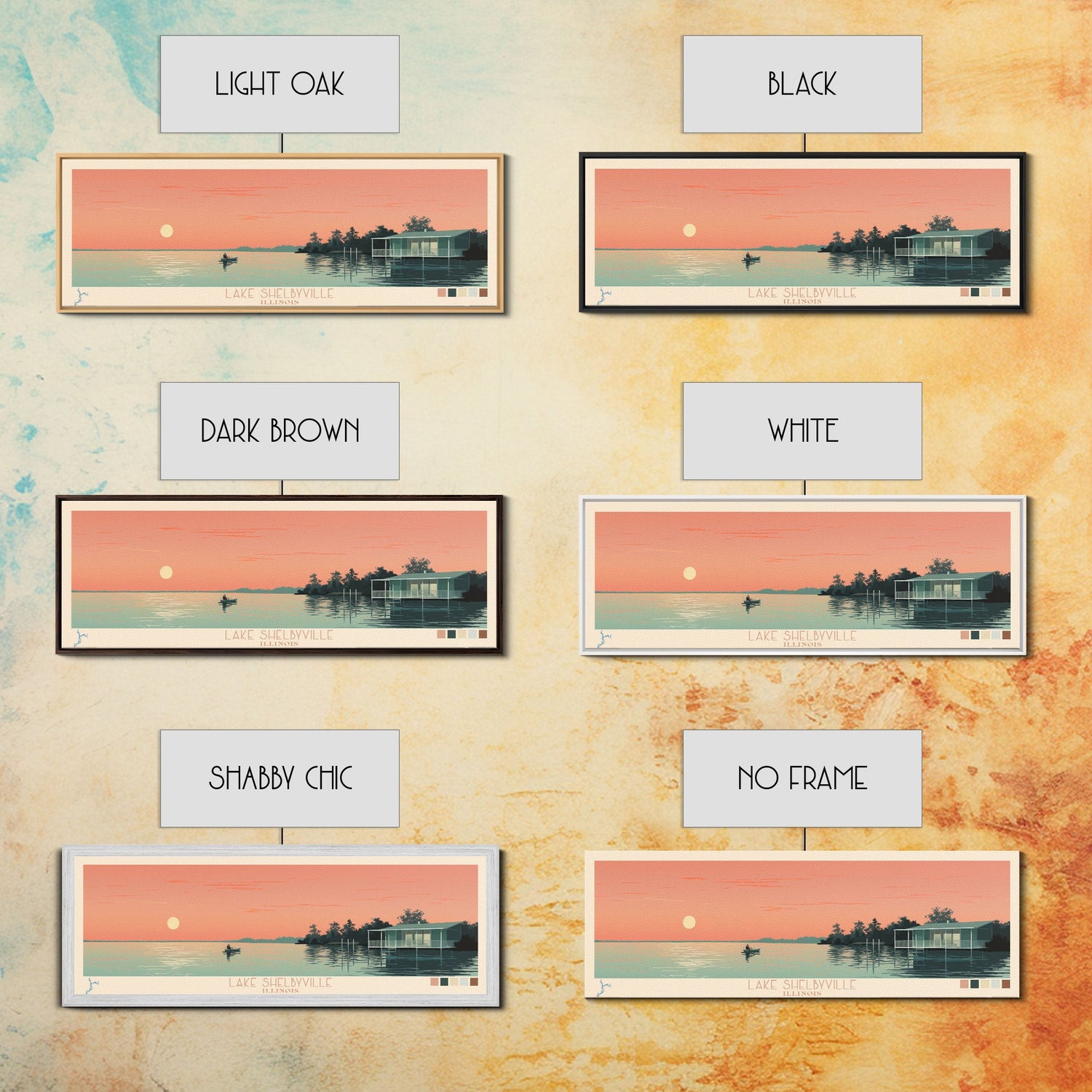 Lake Shelbyville Illinois Framed Canvas Print, Panoramic Wall Art, Midcentury Modern, Pop Art, Bedroom Art, Travel Poster, Lake House Decor