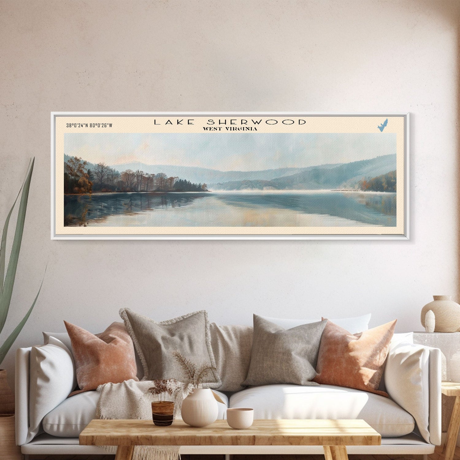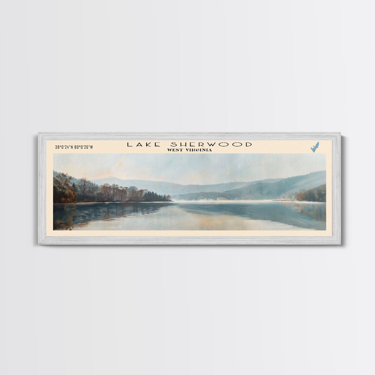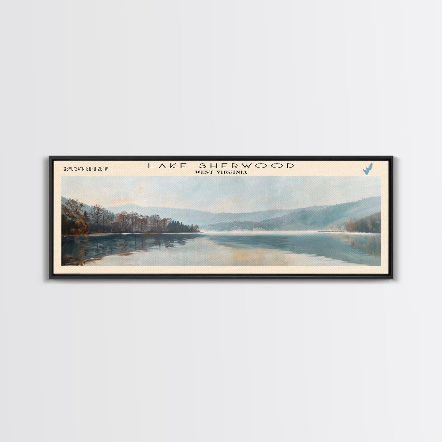 Lake Sherwood West Virginia Framed Canvas Print, Lake House Decor, Panoramic Wall Art, Travel Poster, Serene Landscape Painting, Living Room Decor