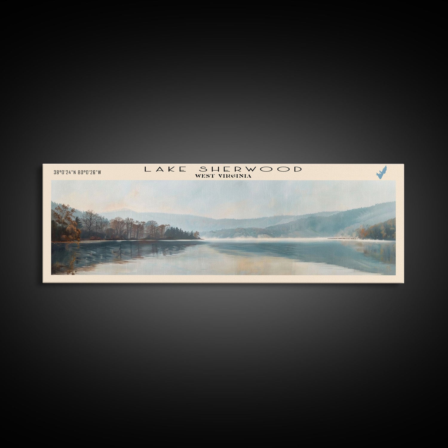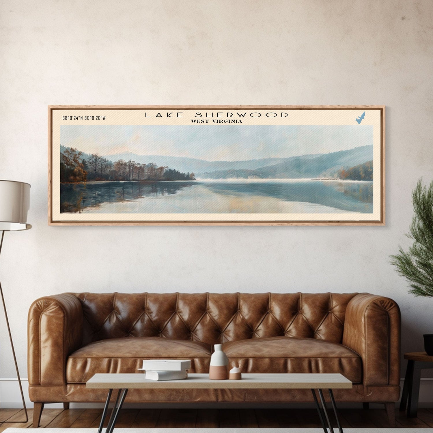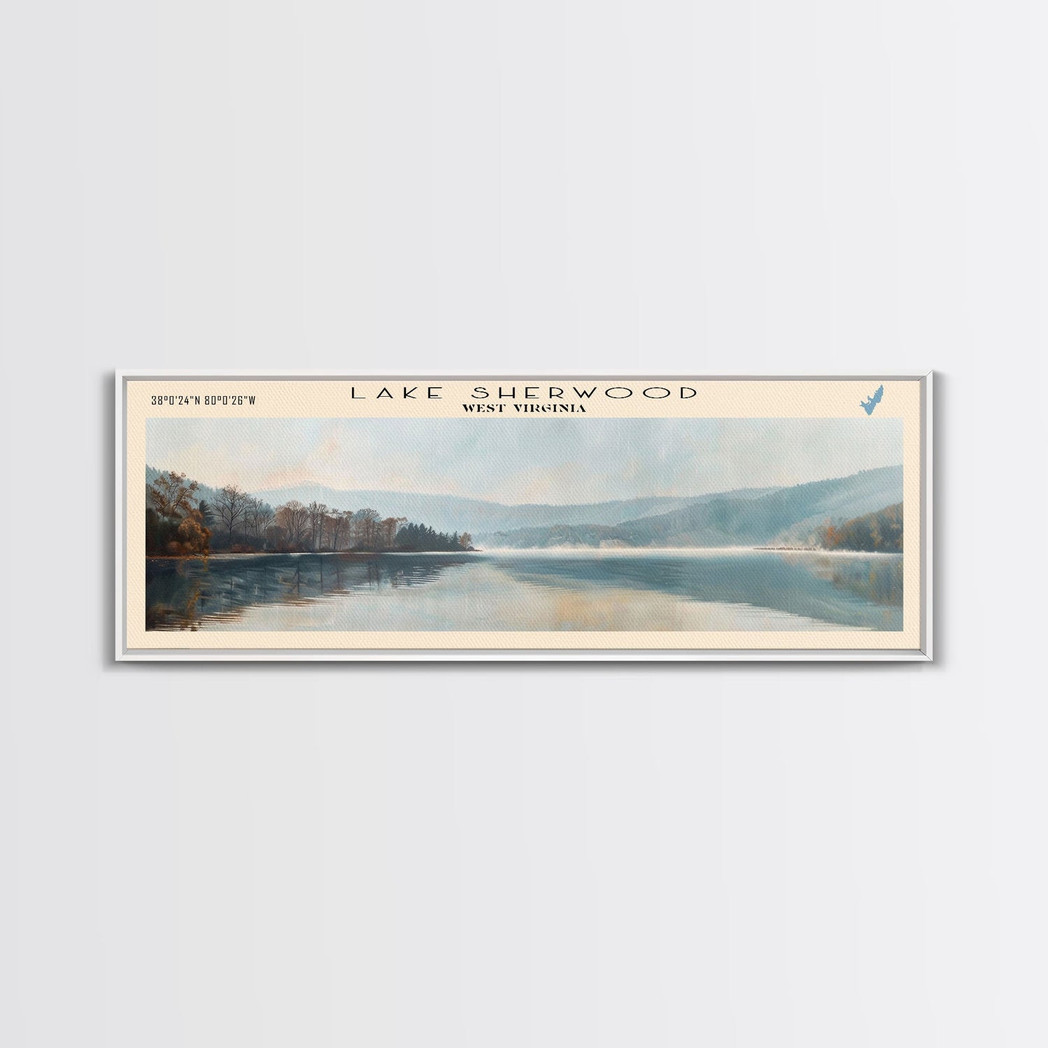 Lake Sherwood West Virginia Framed Canvas Print, Lake House Decor, Panoramic Wall Art, Travel Poster, Serene Landscape Painting, Living Room Decor