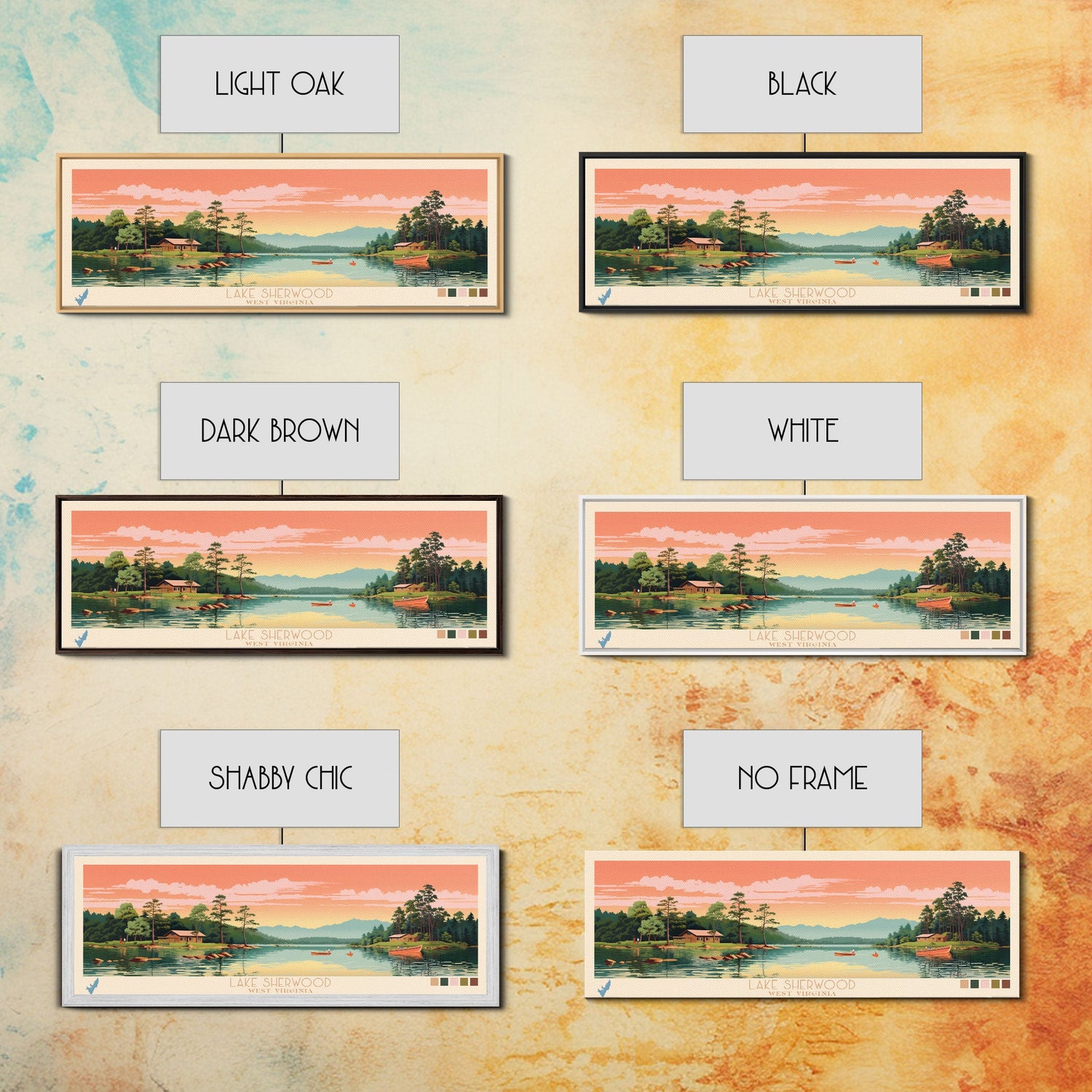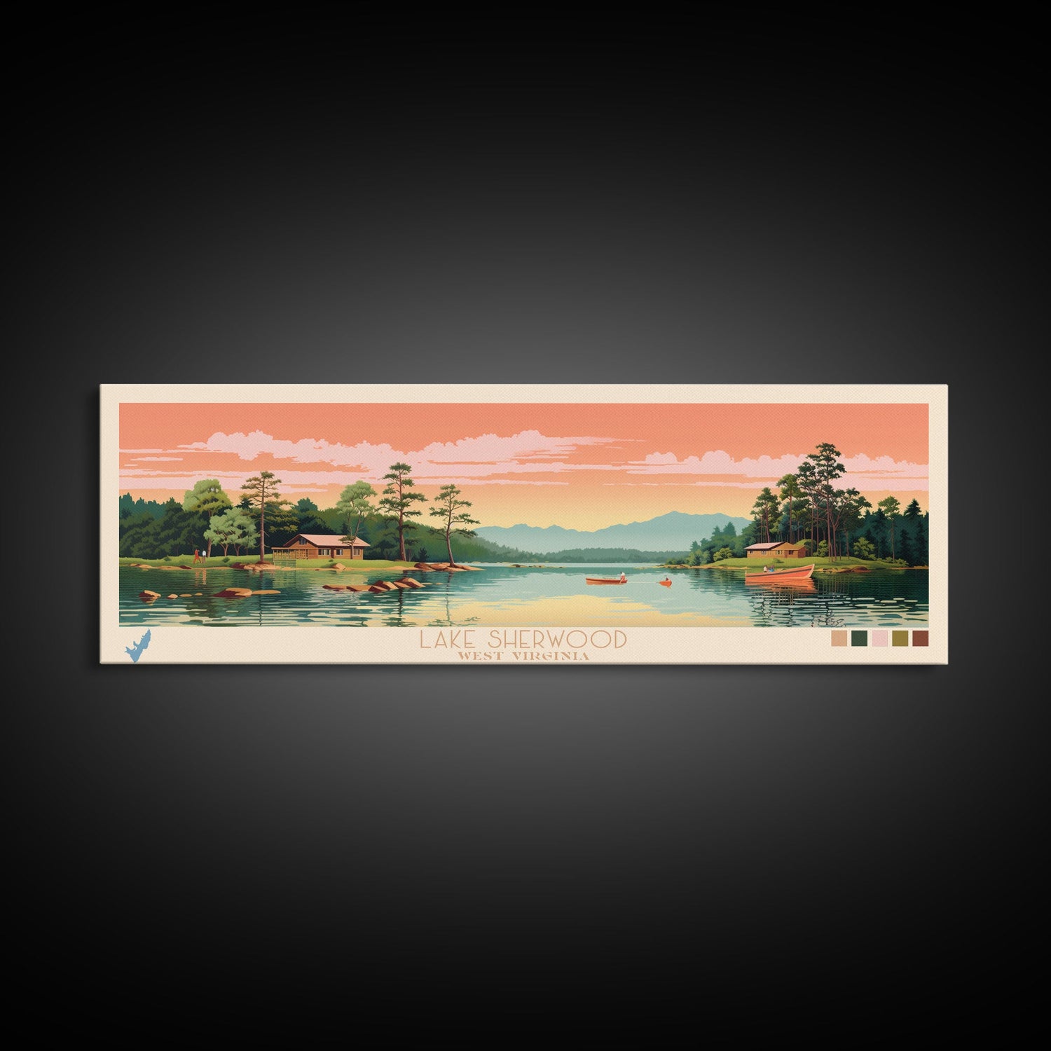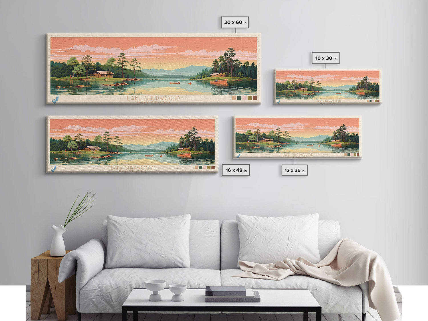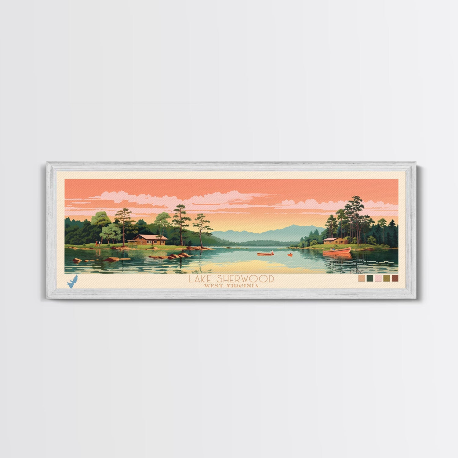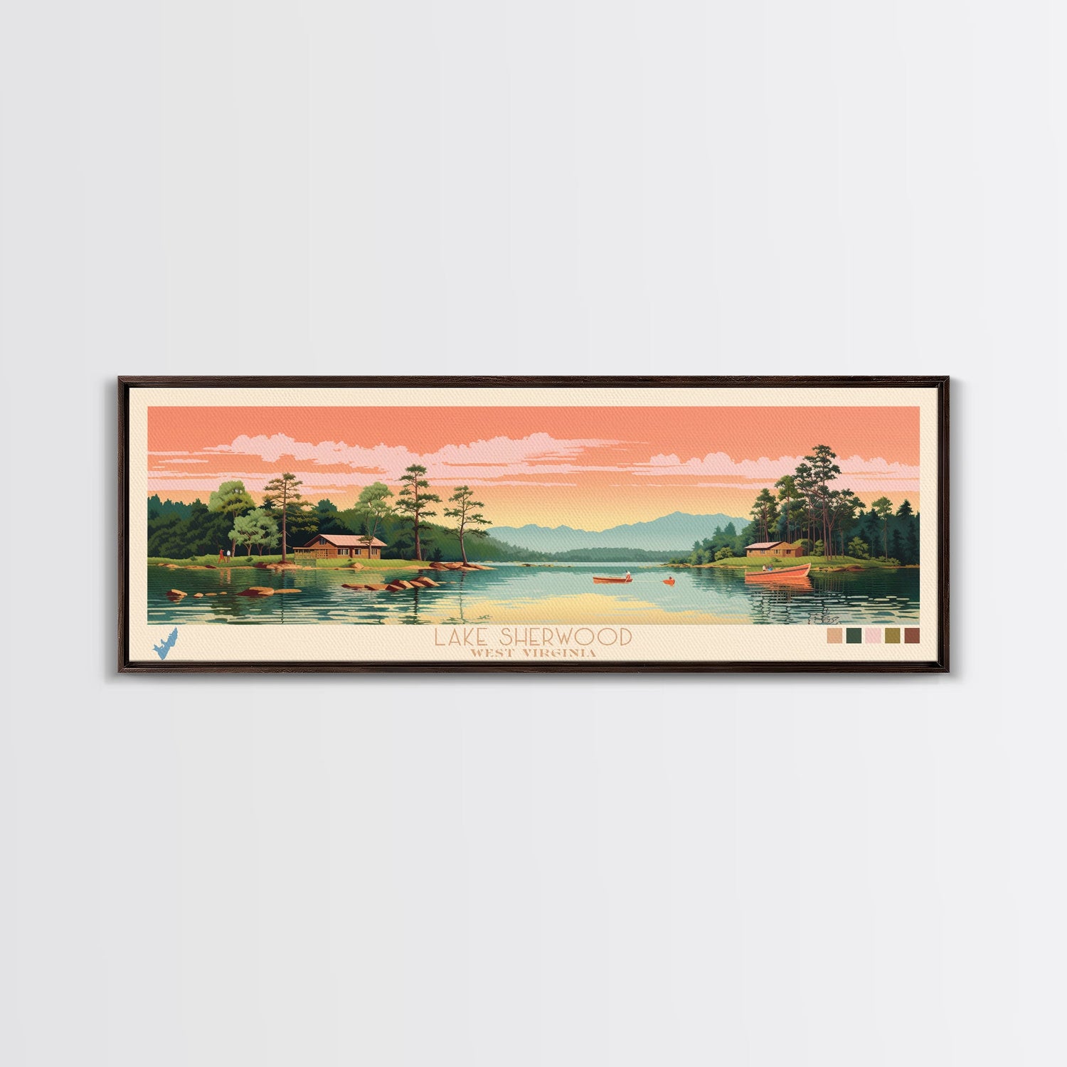 Lake Sherwood West Virginia Framed Canvas Print, Panoramic Wall Art, Midcentury Modern, Pop Art, Living Room Decor, Travel Poster, Lake House Art