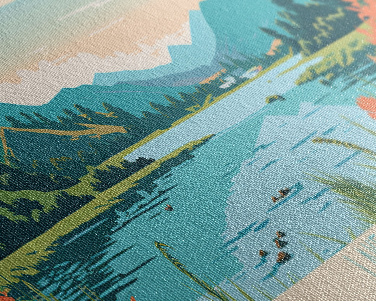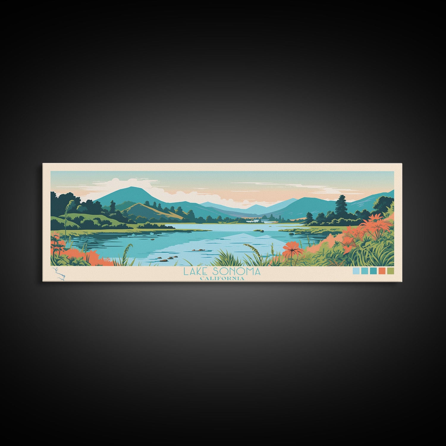 Lake Sonoma California Framed Canvas Print, Panoramic Wall Art, Midcentury Modern, Pop Art, Living Room Decor, Travel Poster, Lake House Art