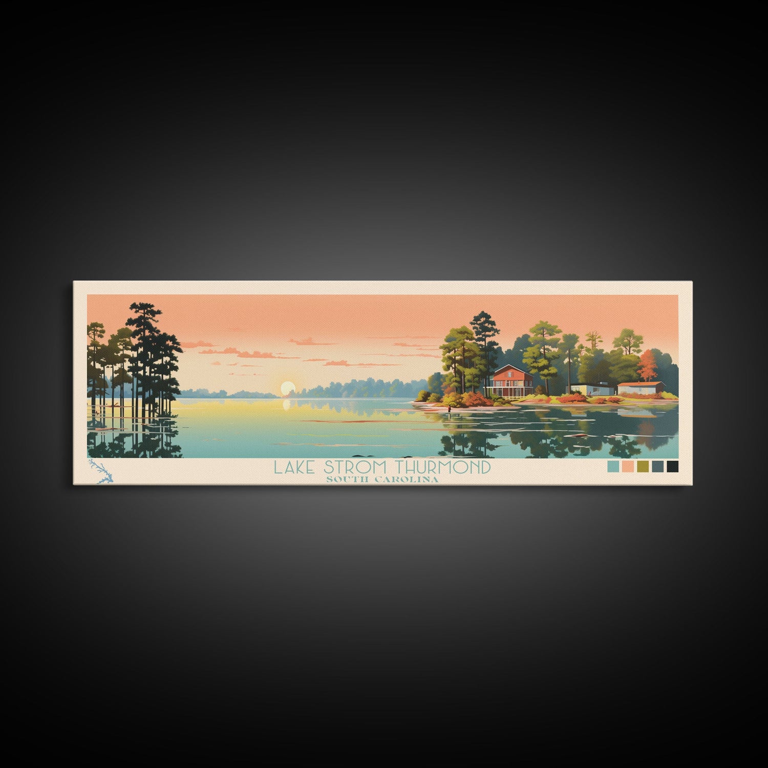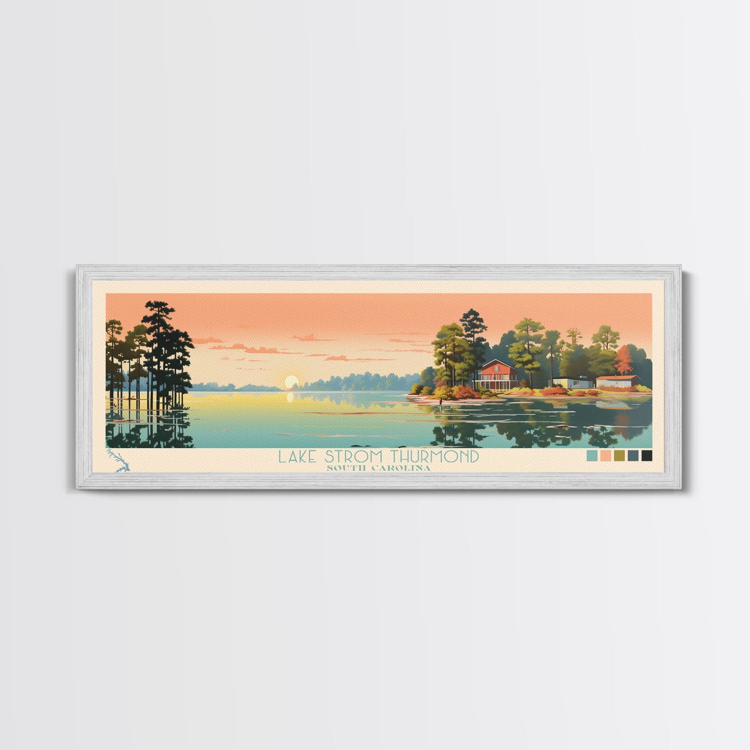 Lake Strom Thurmond South Carolina Framed Canvas Print, Panoramic Wall Art, Midcentury Modern, Pop Art, Living Room Decor, Travel Poster, Lake House Art