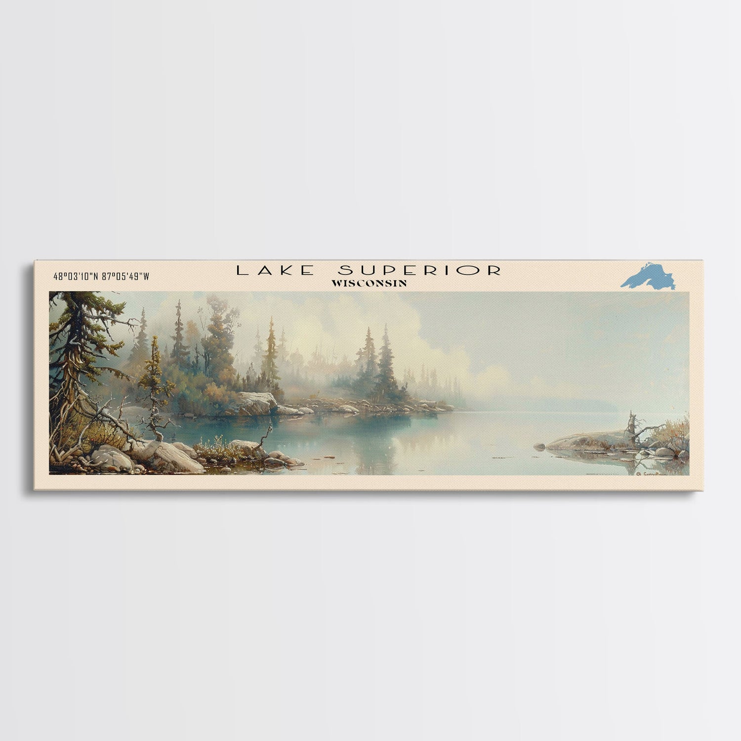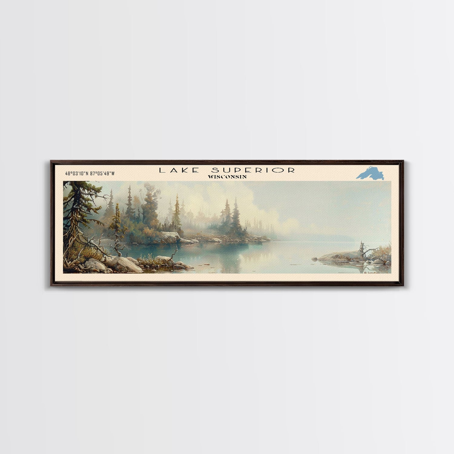 Lake Superior Framed Canvas Print, Lake House Decor, Panoramic Wall Art, Travel Poster, Beautiful Landscape Painting, Modern Art