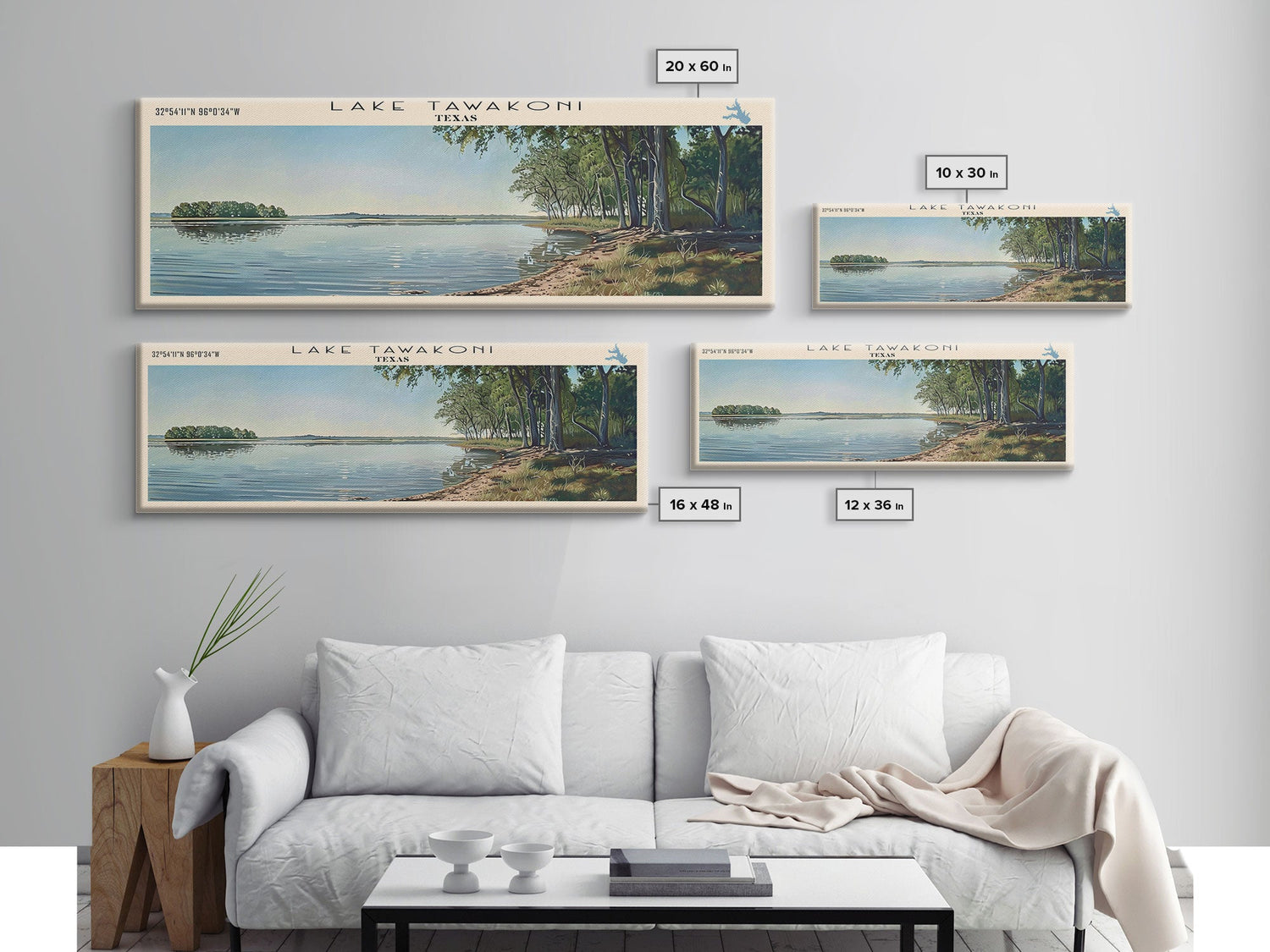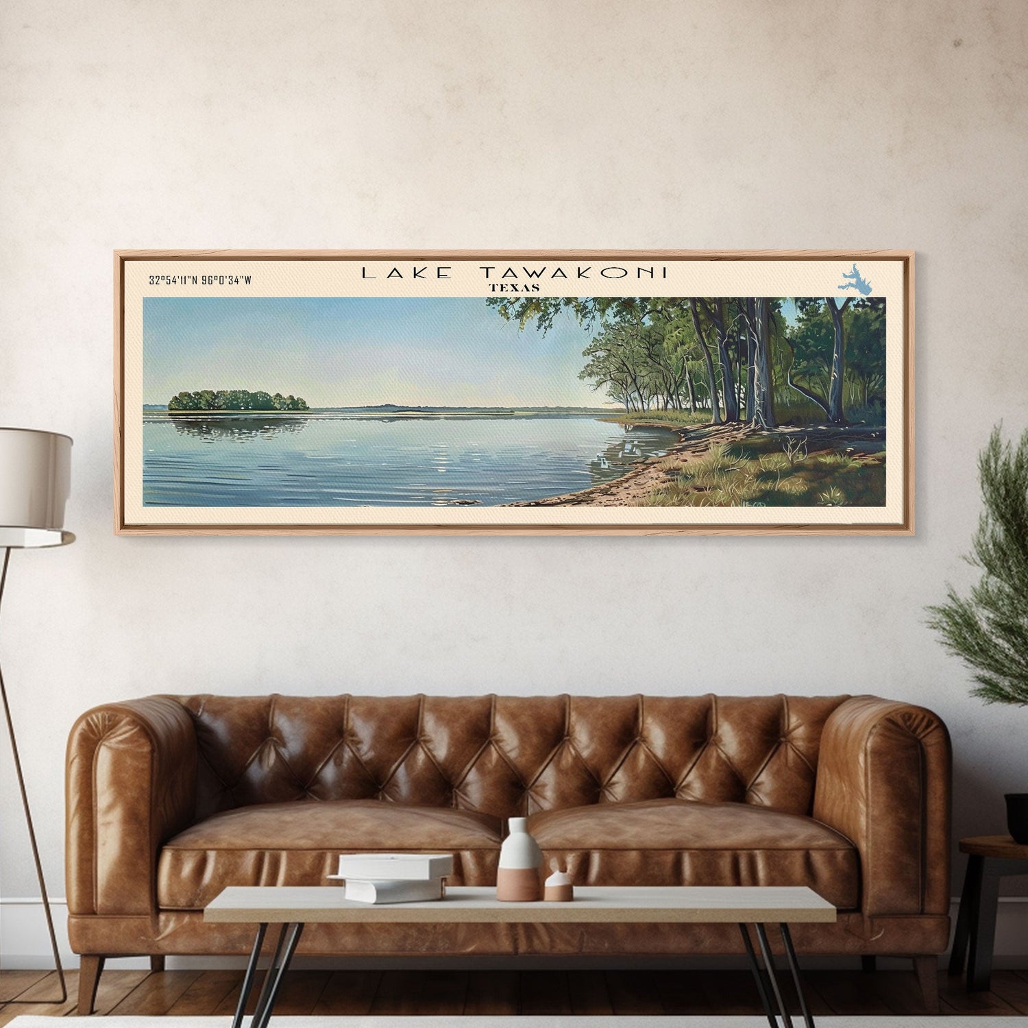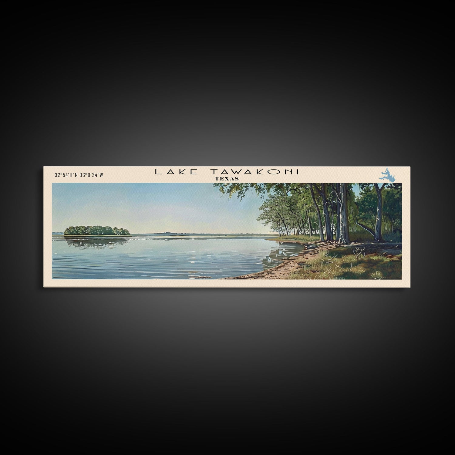 Lake Tawakoni Texas Framed Canvas Print, Lake House Decor, Panoramic Wall Art, Travel Poster, Stunning Landscape Painting, Bedroom Decor