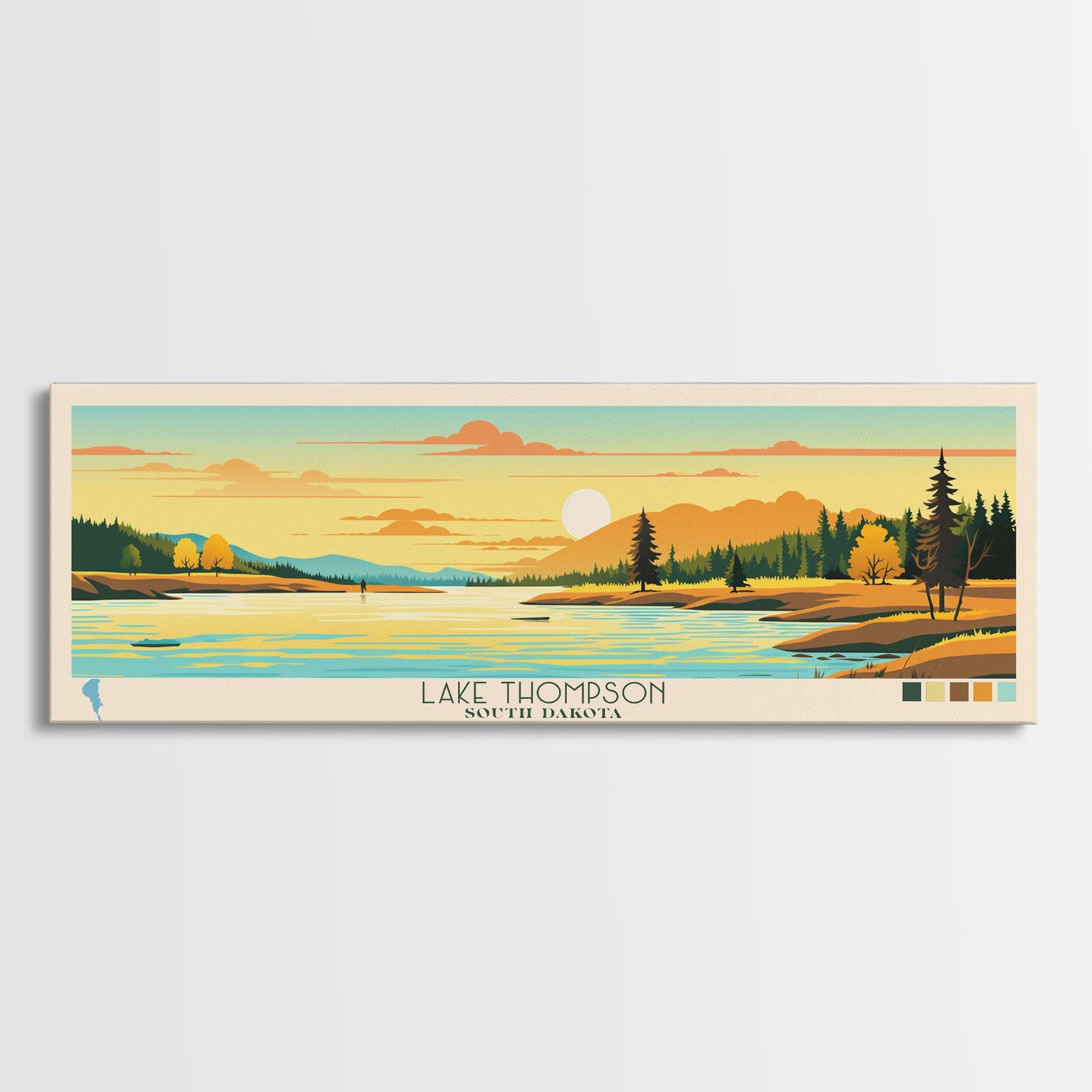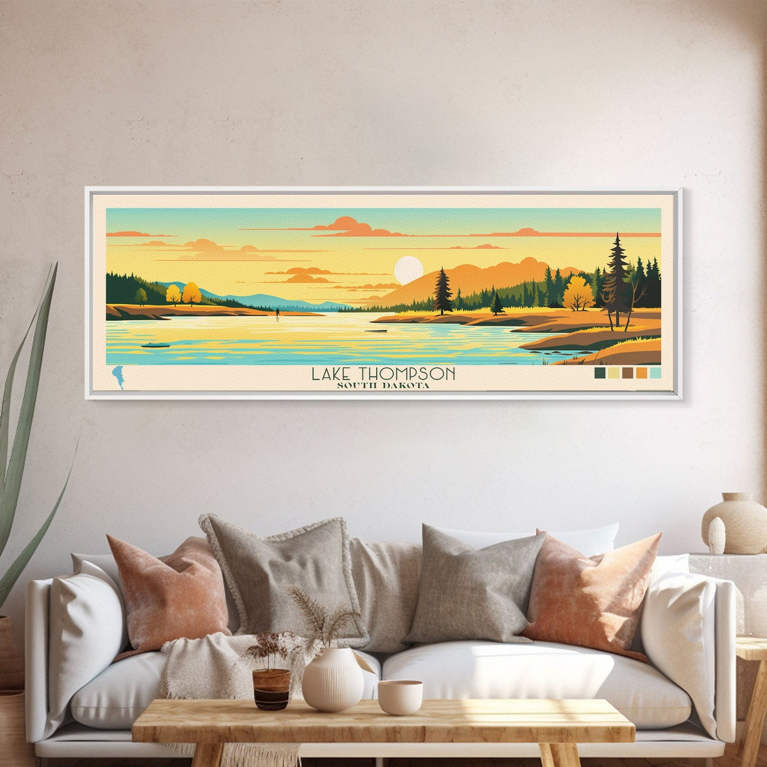 Lake Thompson South Dakota Framed Canvas Print, Panoramic Wall Art, Midcentury Modern, Pop Art, Bedroom Art, Travel Poster, Lake House Decor