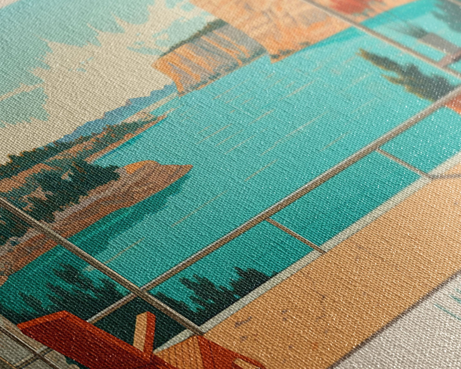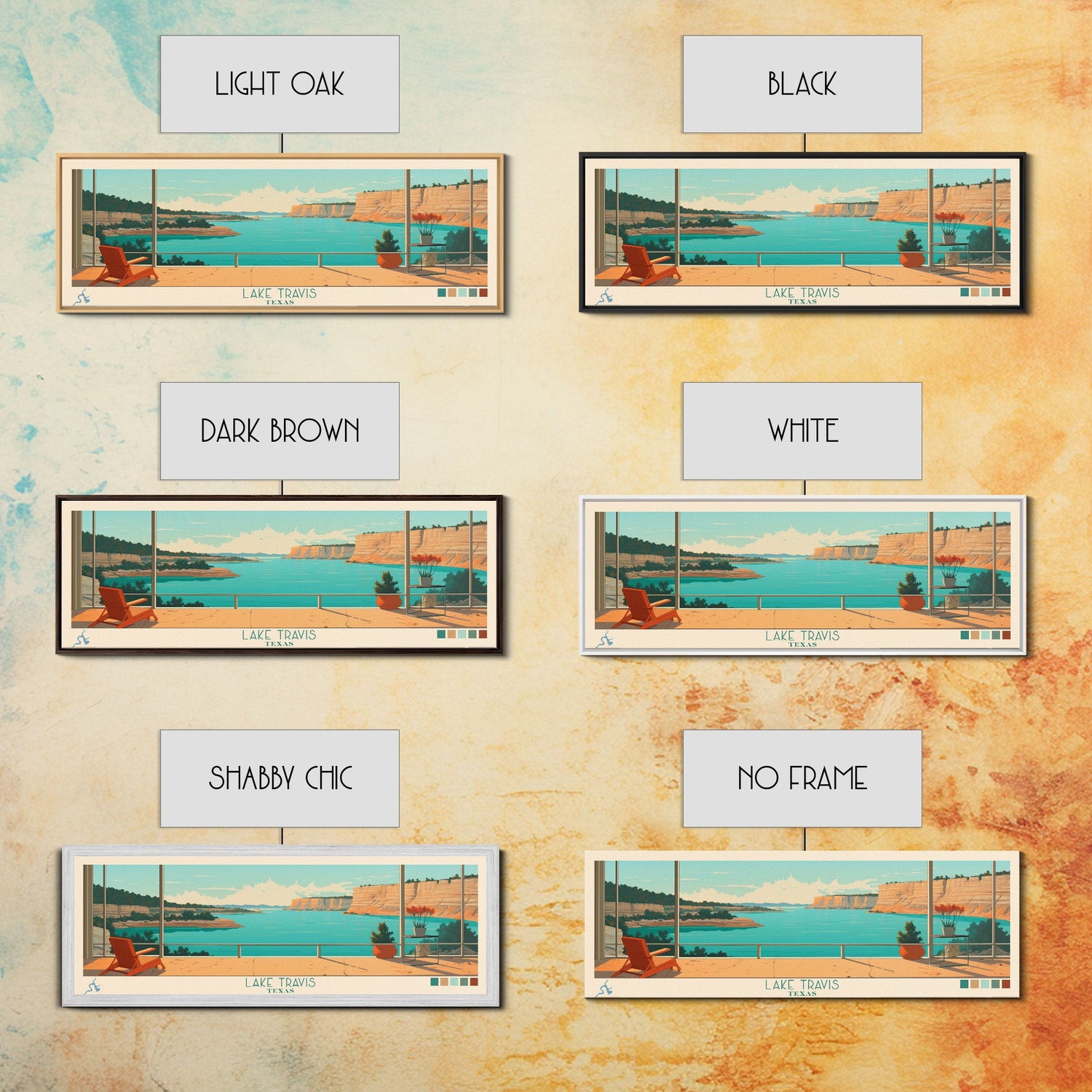 Lake Travis Texas Framed Canvas Print, Panoramic Wall Art, Midcentury Modern, Pop Art, Living Room Decor, Travel Poster, Lake House Art