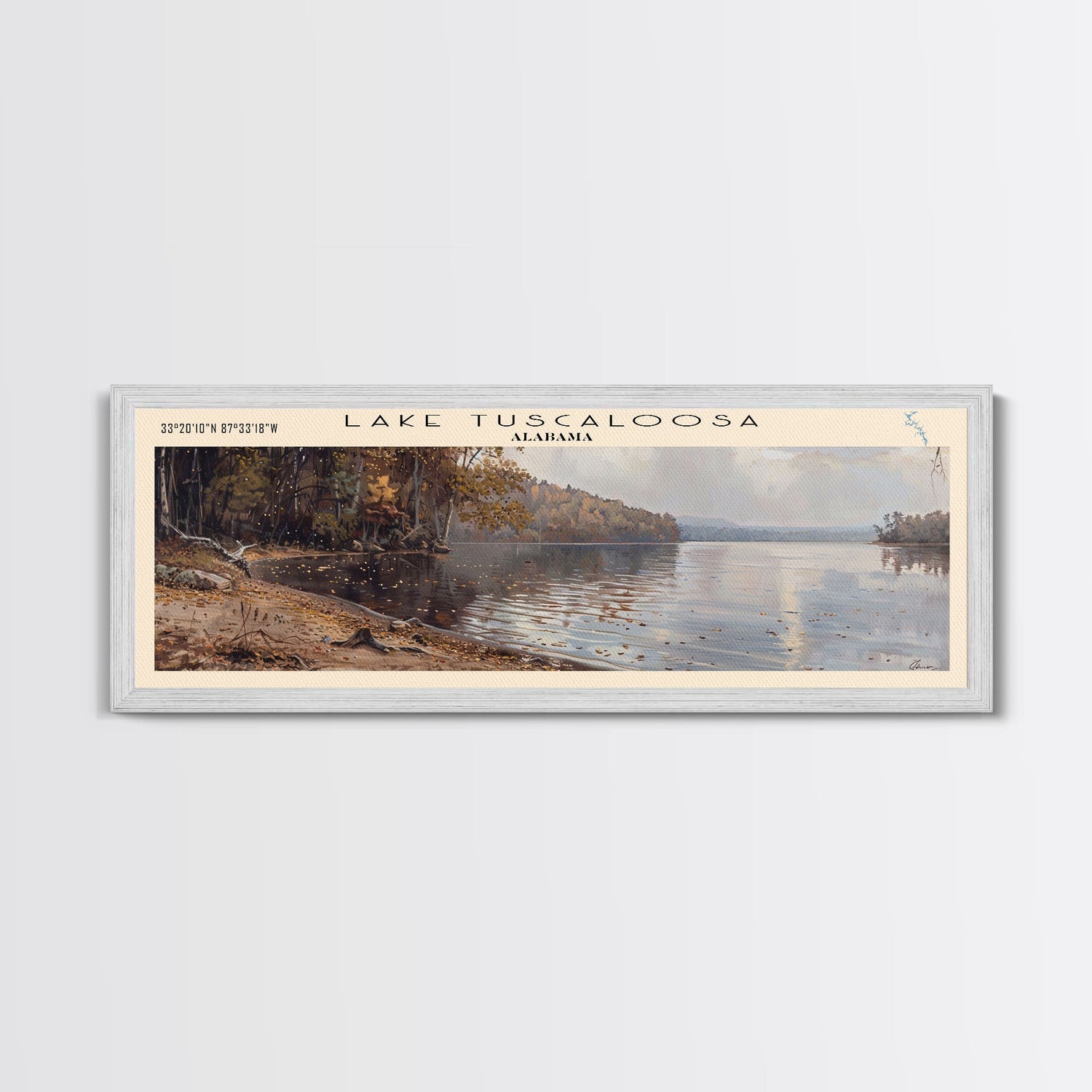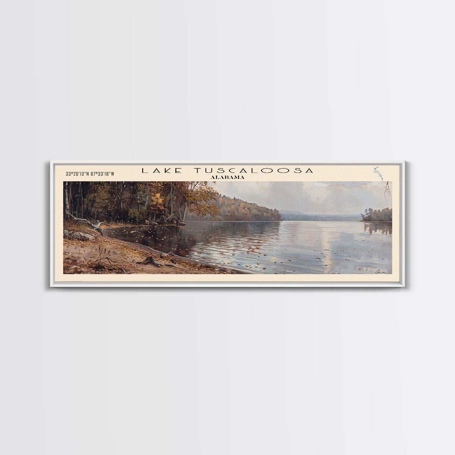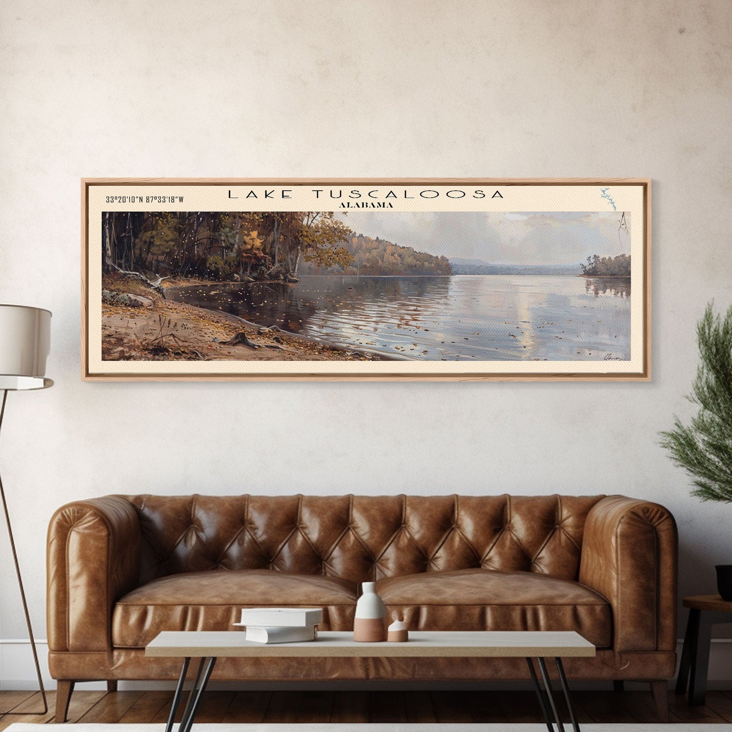 Lake Tuscaloosa Alabama Framed Canvas Print, Lake House Decor, Panoramic Wall Art, Travel Poster, Scenic Landscape Painting, Living Room Decor