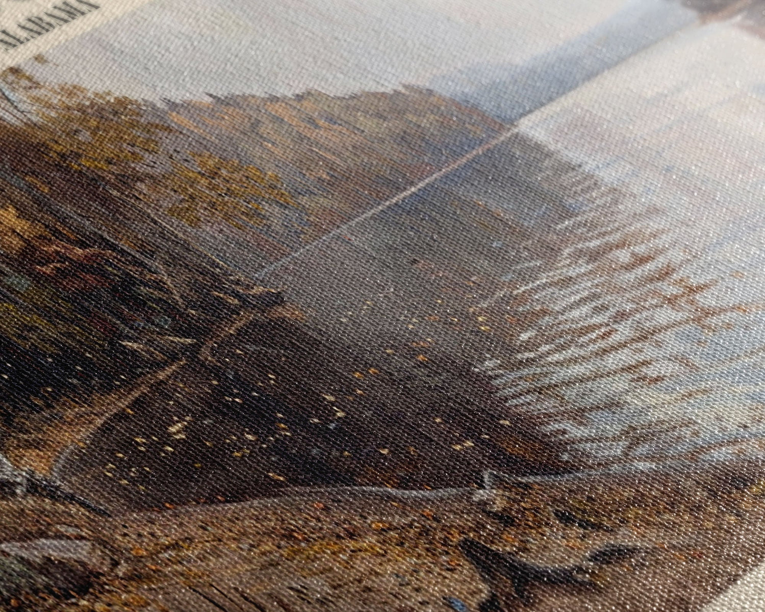 Most of our canvases are made in the USA, with the exception of canvases ordered with the light oak unstained frames, and any large canvases (24x48, 30x60, 16x48 and 20x60) ordered WITH a frame. These are temporarily made in and shipped from Europe, while we try to find a more consistent supplier in the USA.