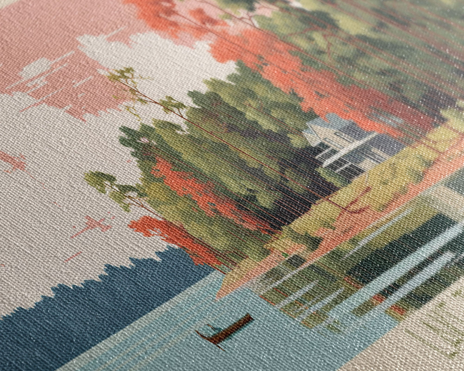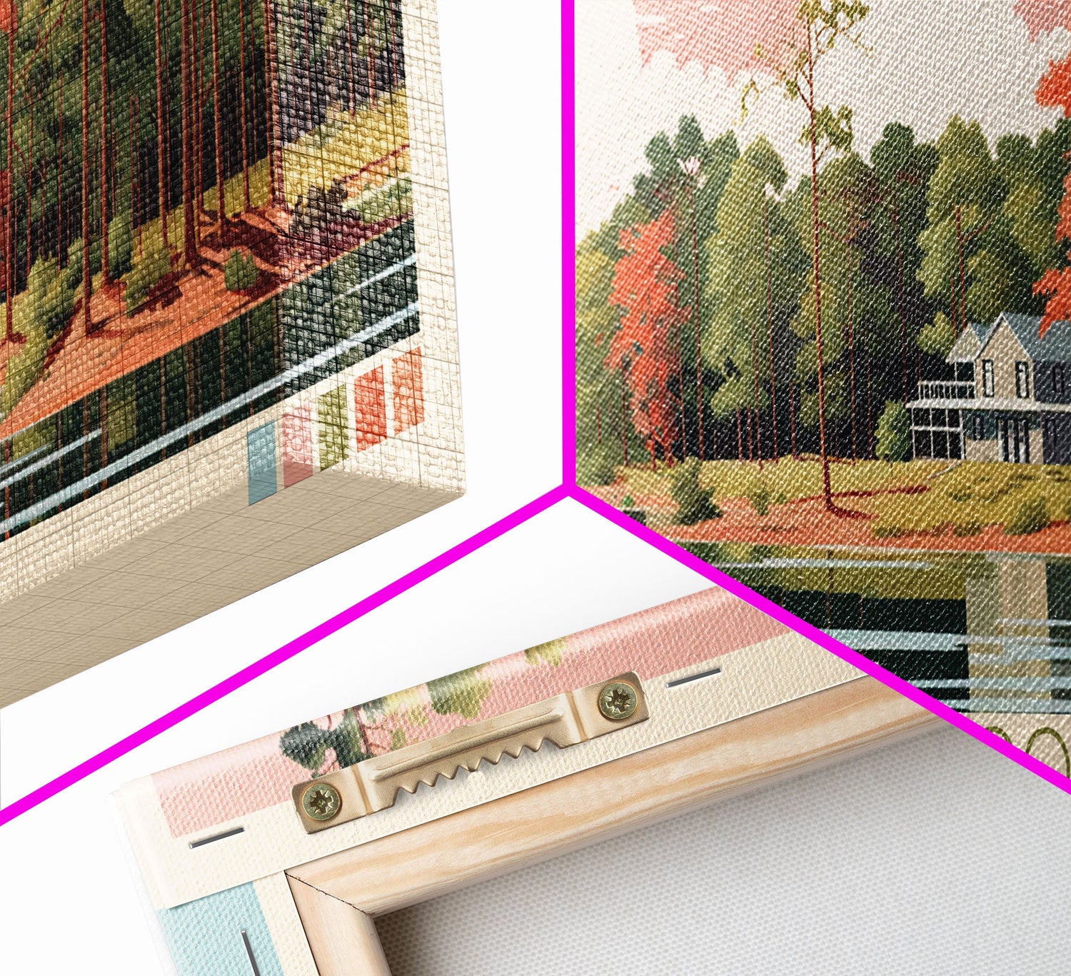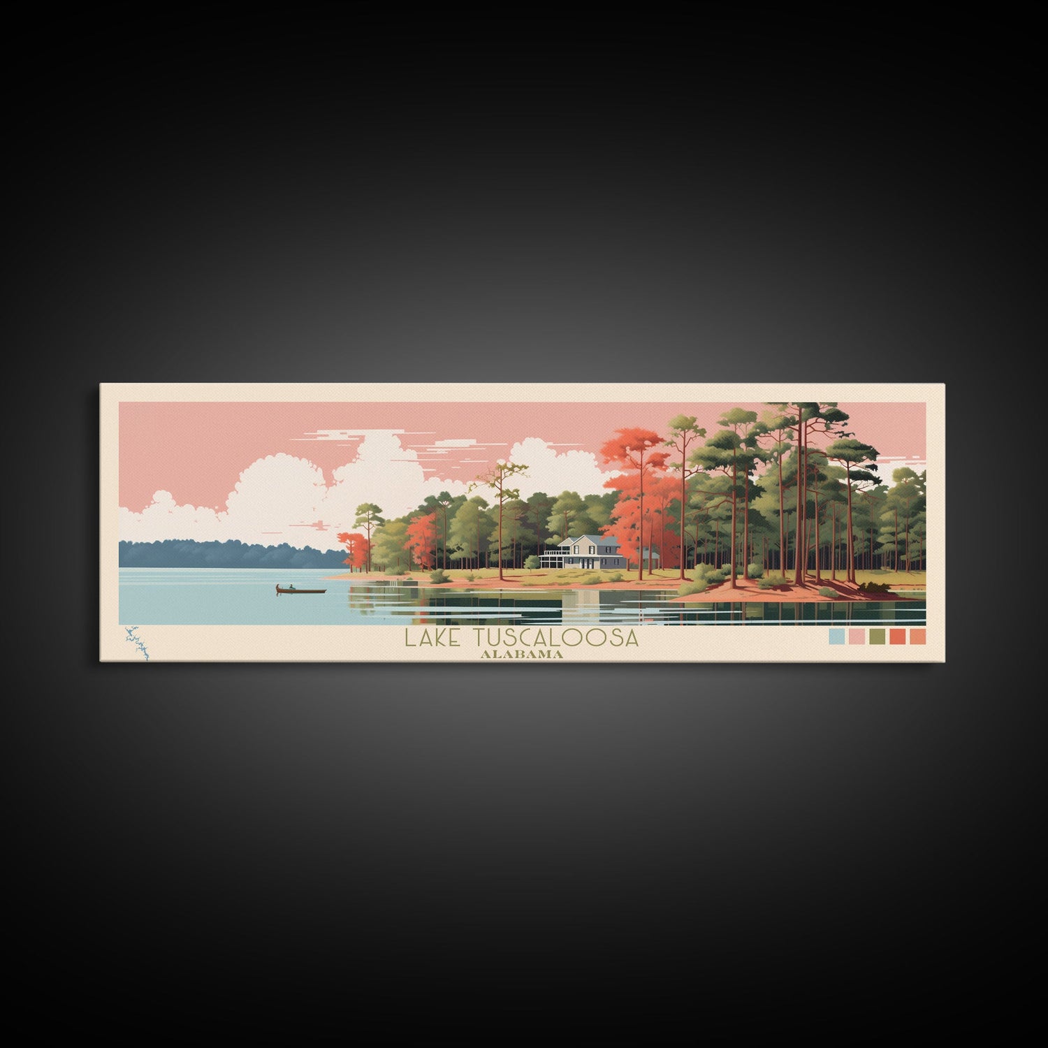 Lake Tuscaloosa, Alabama Panoramic Wall Art Framed Canvas Print, Midcentury Modern, Pop Art, Home Decor, Travel Poster, Bedroom Art