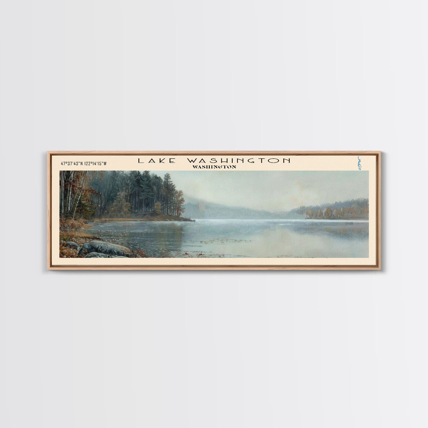 Lake Washington Washington Framed Canvas Print, Lake House Decor, Panoramic Wall Art, Travel Poster, Landscape Painting, Living Room Decor