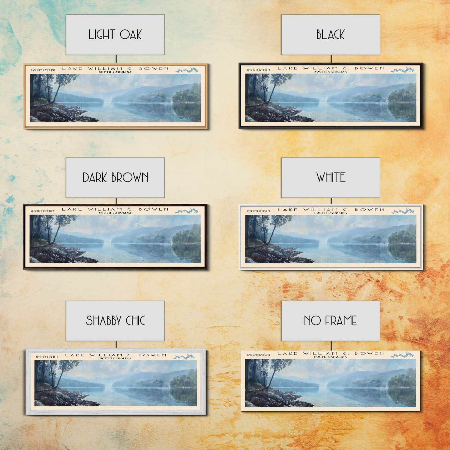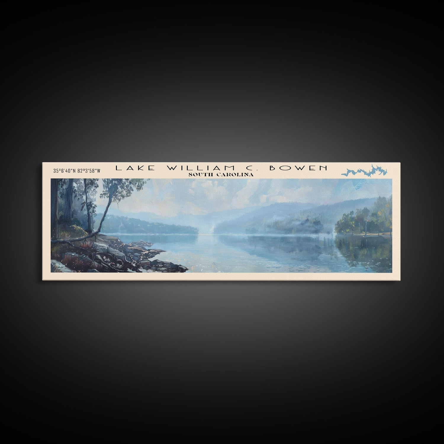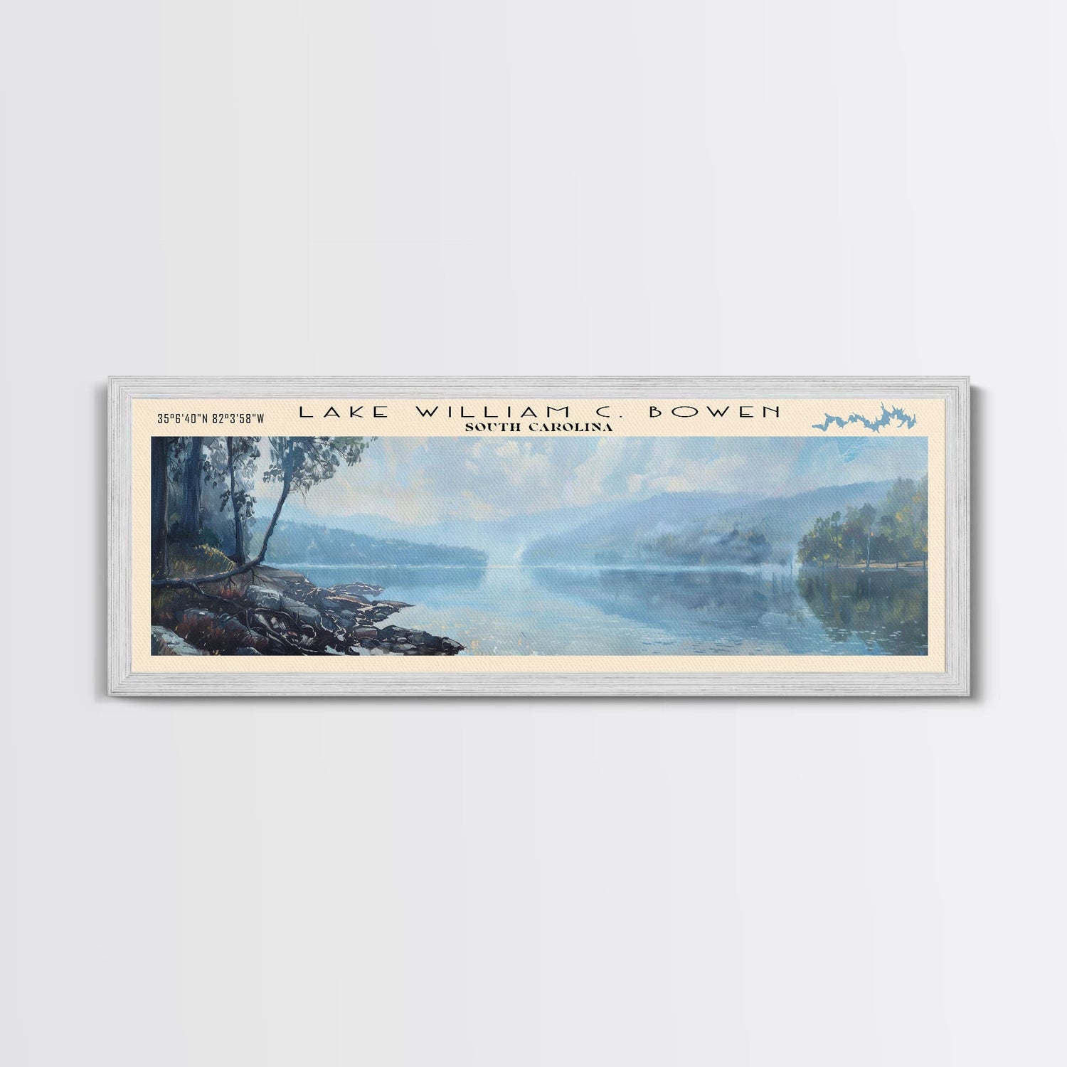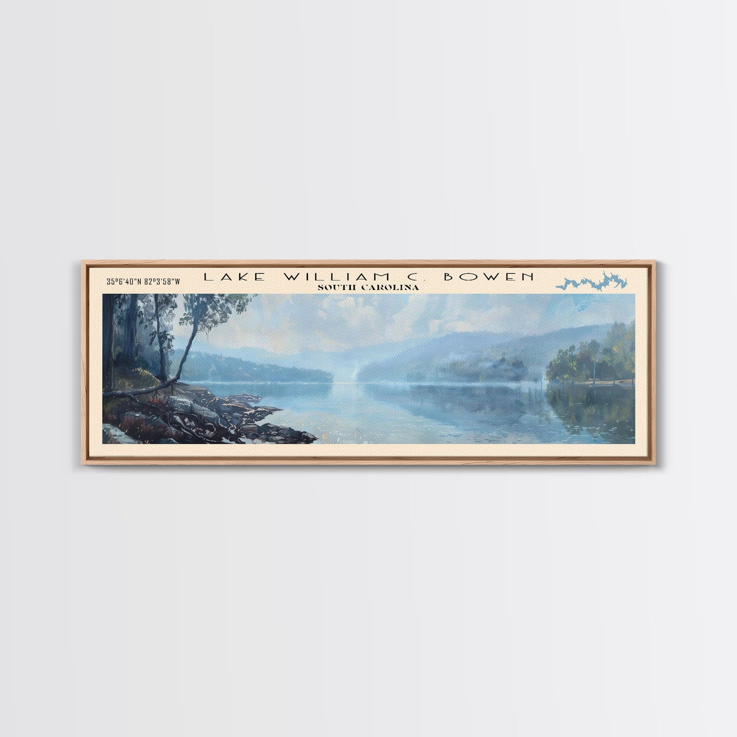 Lake William C Bowen South Carolina Framed Canvas Print, Lake House Decor, Panoramic Wall Art, Travel Poster, Landscape Painting, Bedroom Decor