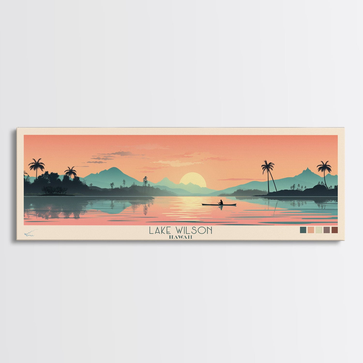 Lake Wilson, Hawaii Panoramic Wall Art Framed Canvas Print, Midcentury Modern, Pop Art, Home Decor, Travel Poster, Living Room Art
