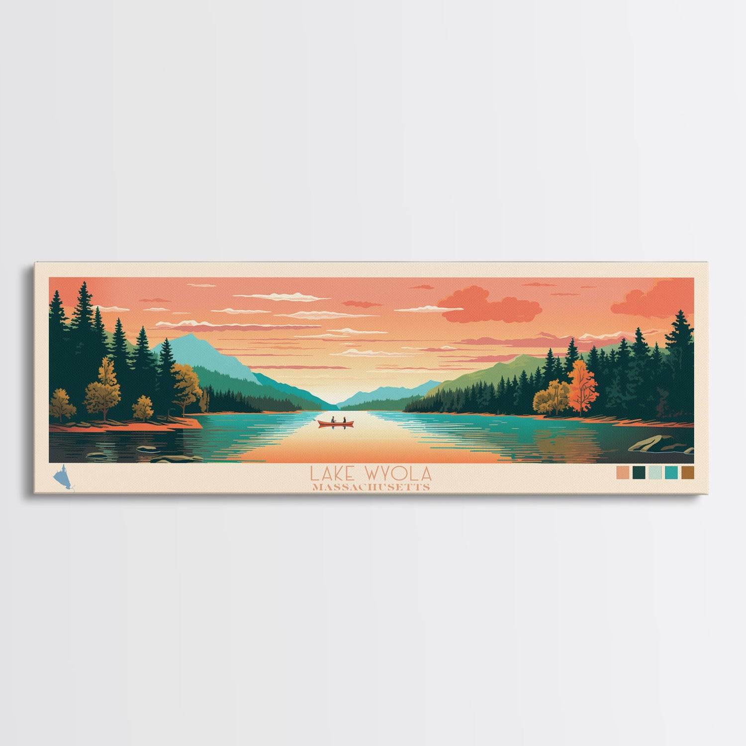Lake Wyola, Massachusetts Panoramic Wall Art Framed Canvas Print, Midcentury Modern, Pop Art, Home Decor, Travel Poster, Bedroom Art