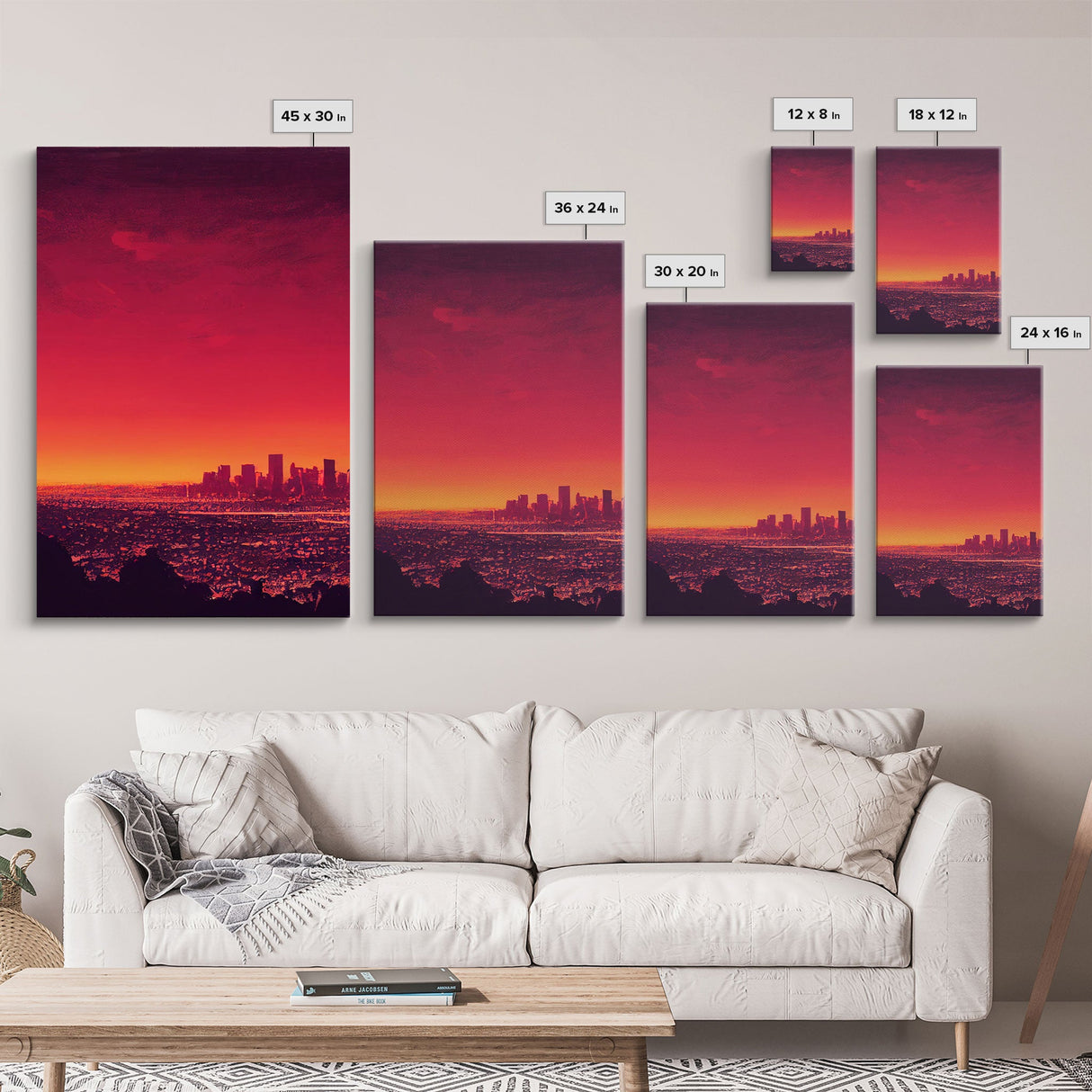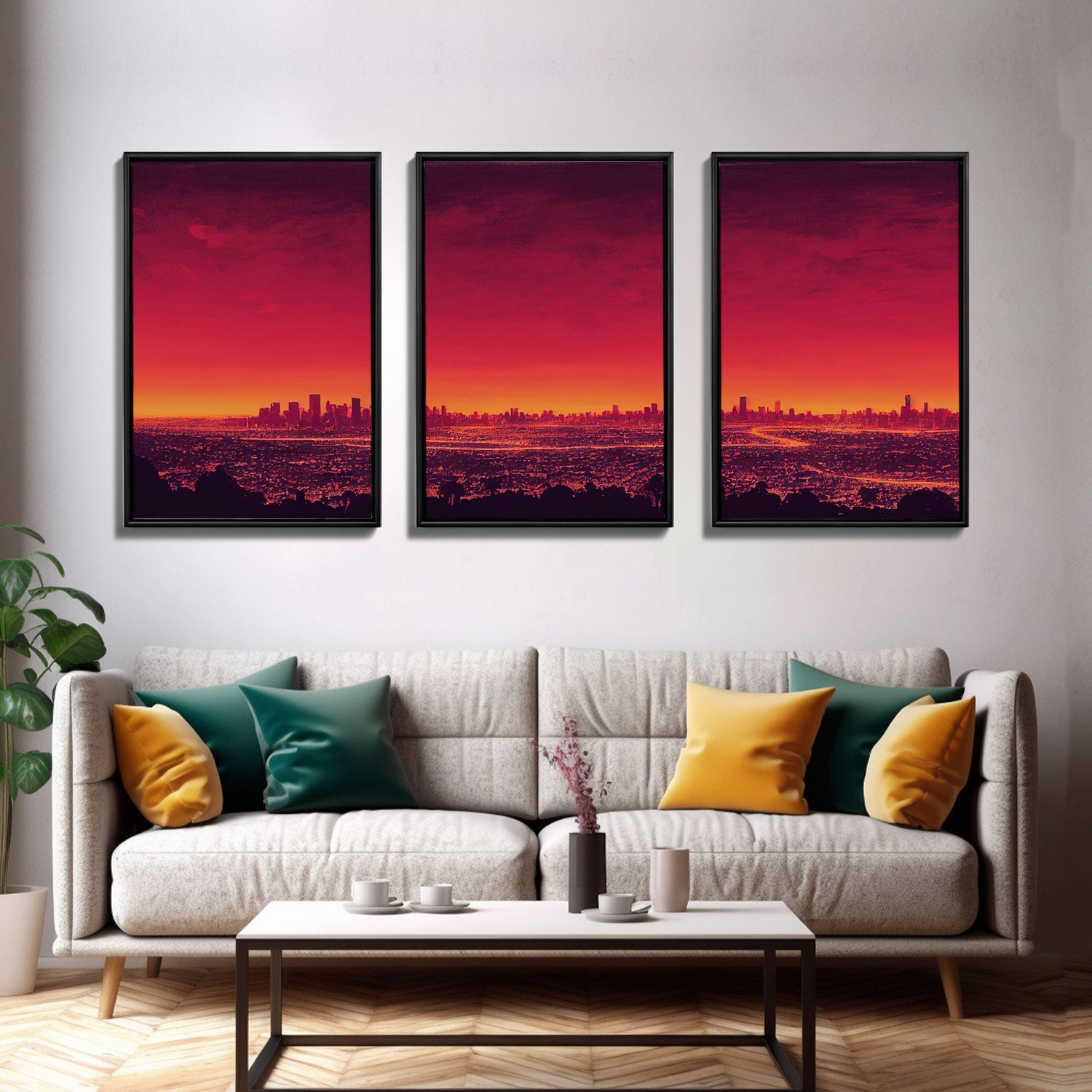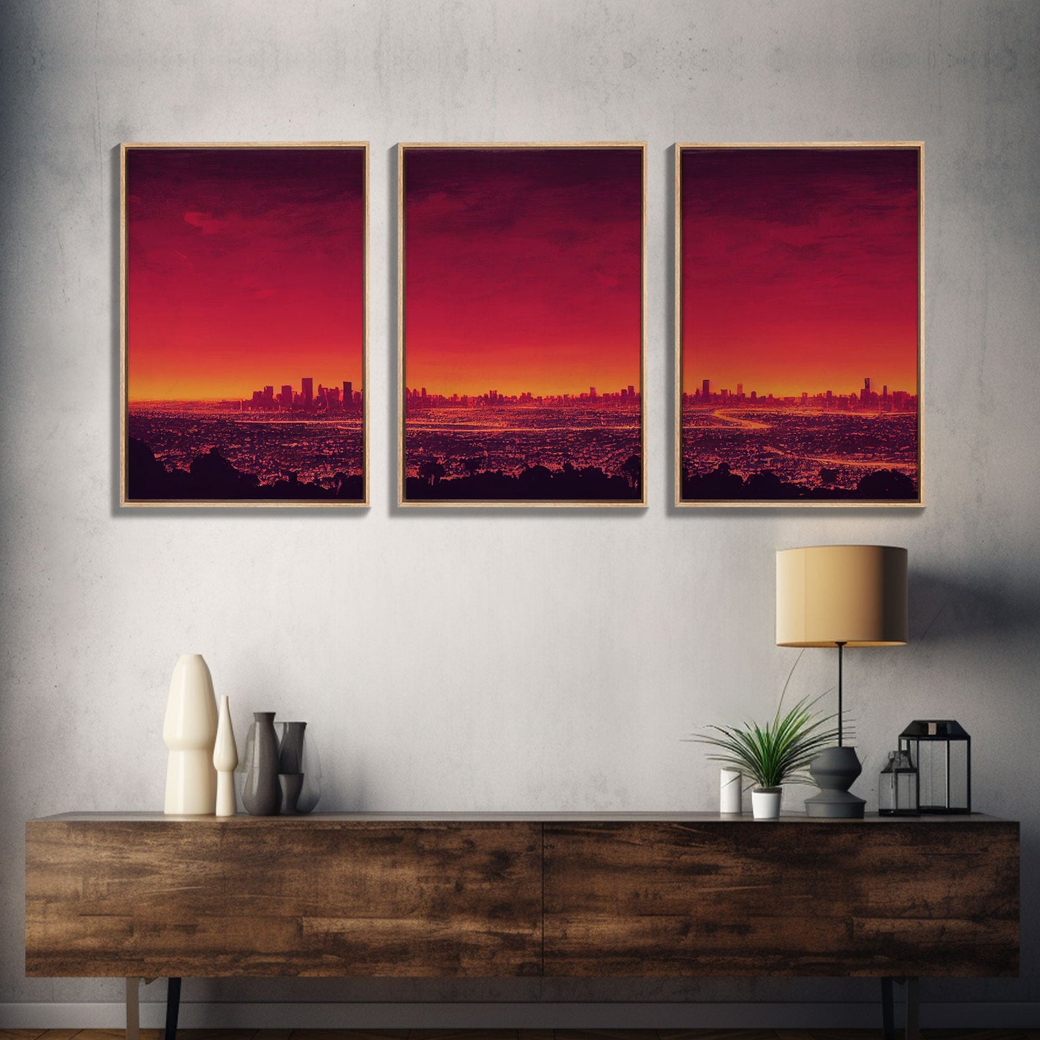 Los Angeles on Fire, Wildfire Art, Abstract City Skyline, 3 piece wall art, 3 piece canvas print
