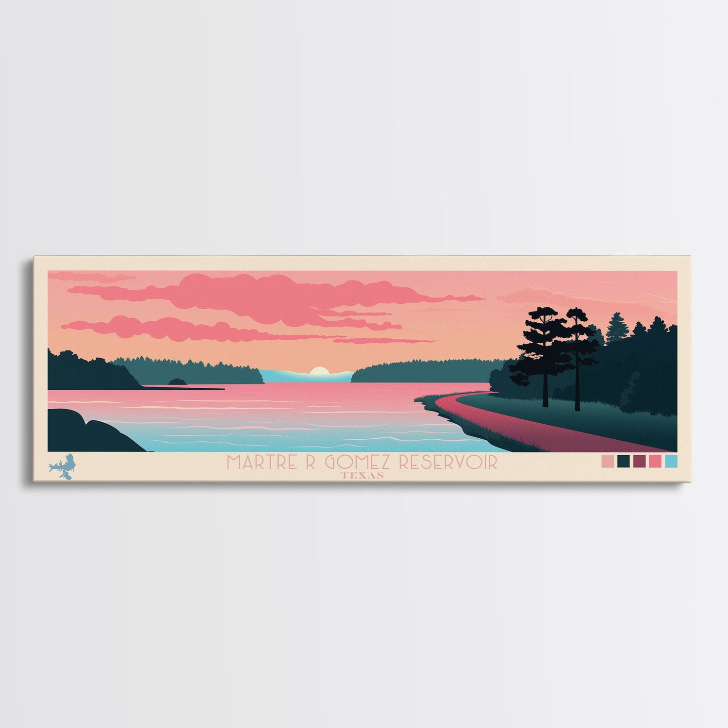 Martre R Gomez Reservoir, Texas Panoramic Wall Art Framed Canvas Print, Midcentury Modern, Pop Art, Home Decor, Travel Poster, Bedroom Art