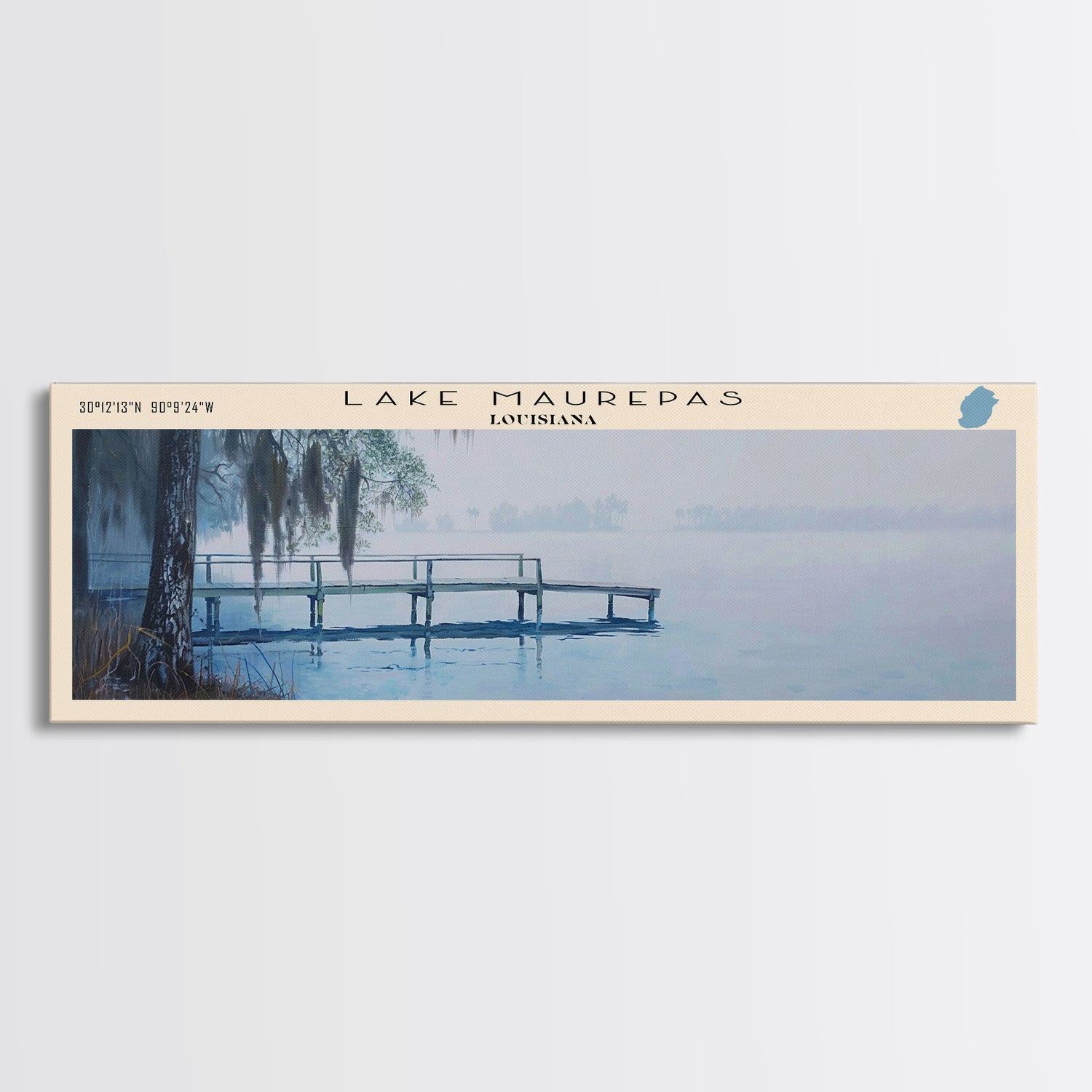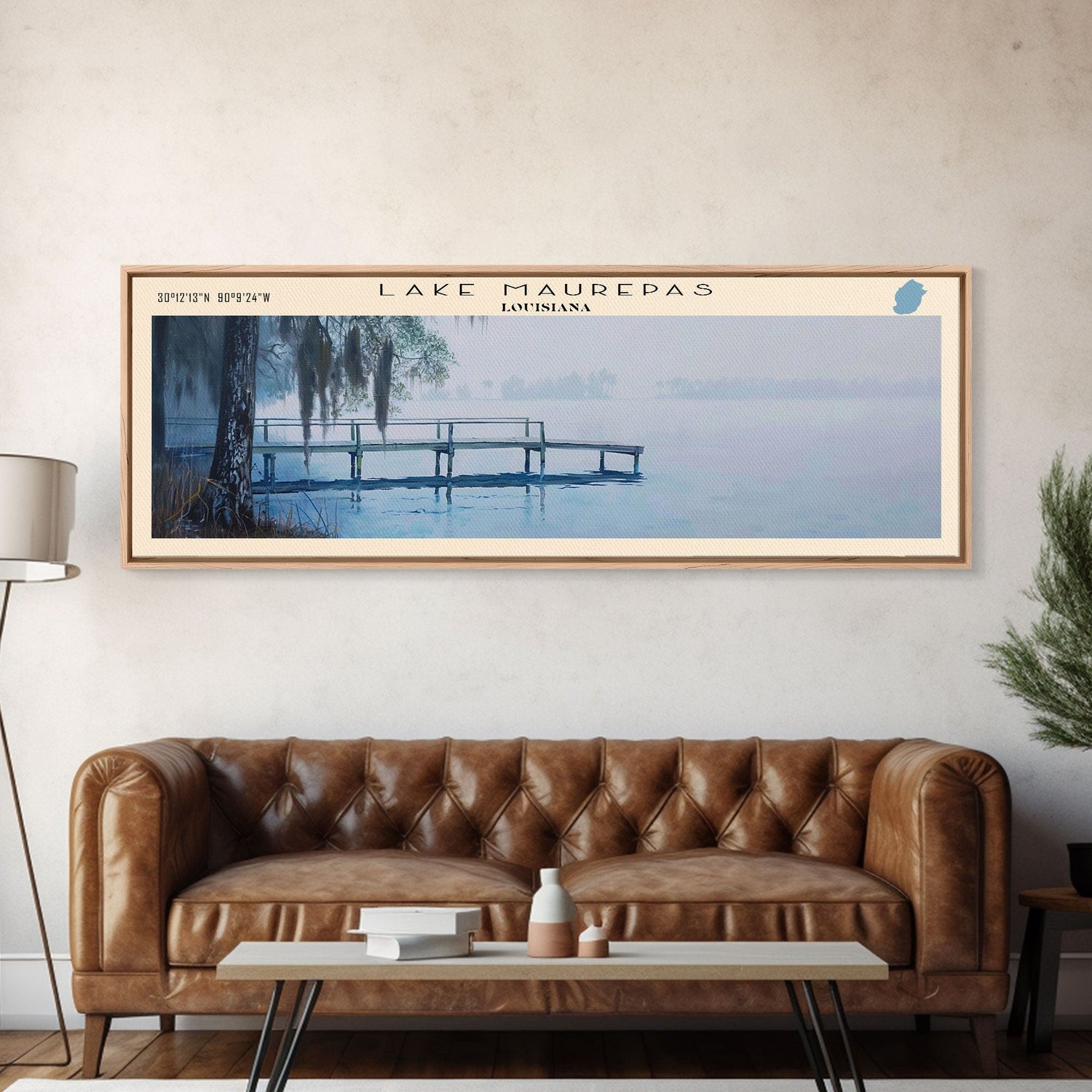 Maurepas Lake Framed Canvas Print, Lake House Decor, Panoramic Wall Art, Travel Poster, Landscape Painting, Modern Art