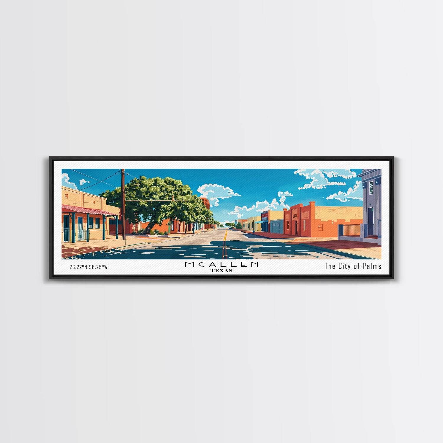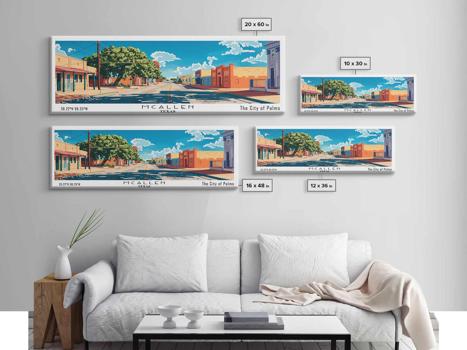 McAllen Texas Panoramic Wall Art, Mid Century Modern Framed Canvas Print, Retro Pop Art Travel Poster, Home Wall Art