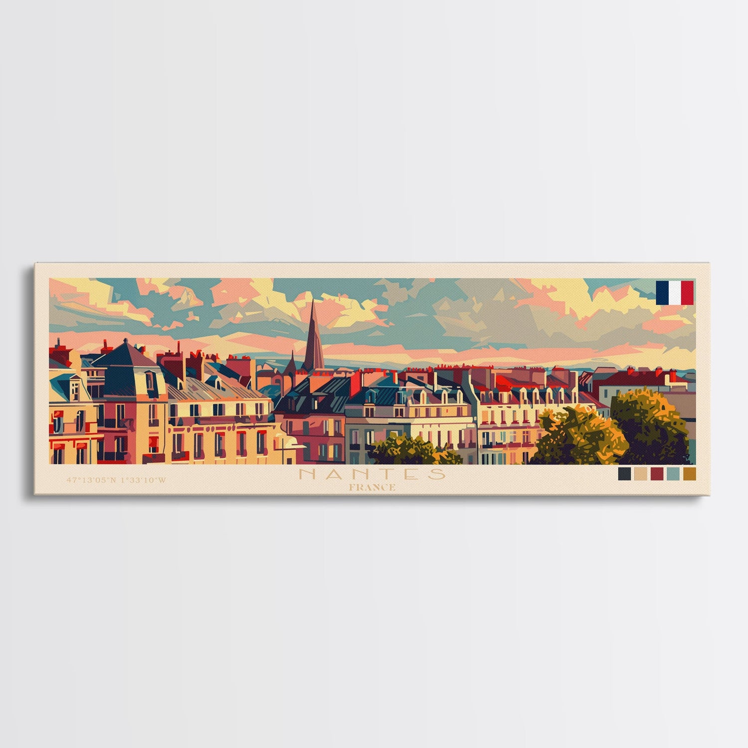 Nantes France Travel Print Wall Art, Panoramic City Art, Travel Art, Wall Decor, Vacation Gift, Framed Canvas Print Or Metal Art