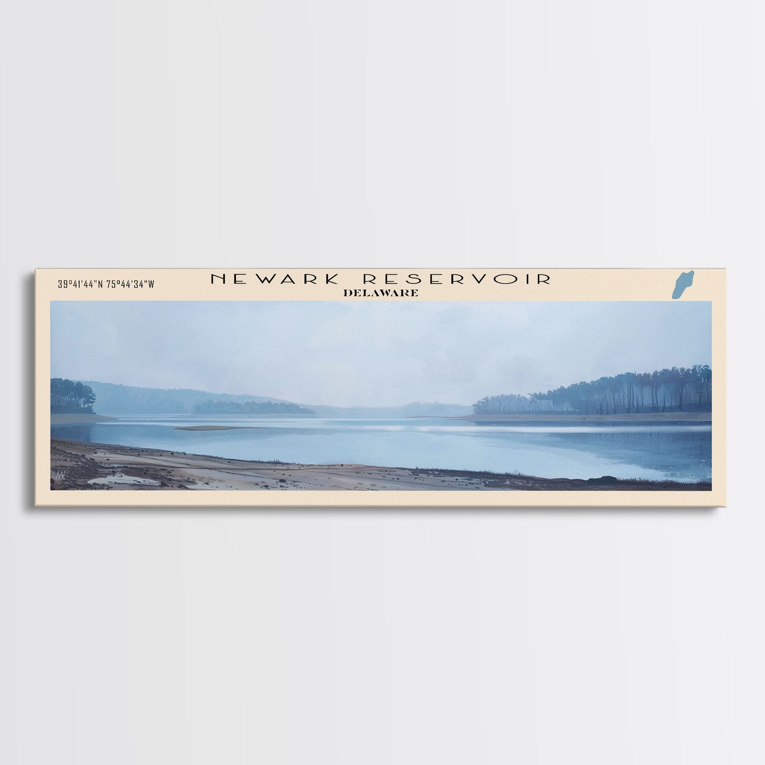 Newark Reservoir Delaware Framed Canvas Print, Lake House Decor, Panoramic Wall Art, Travel Poster, Landscape Painting, Modern Art