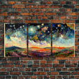 Night Starry Sky Landscape Colorful Night Sky Nature Living Room Wall Art Spiritual Starry, 3 Piece Wall Art, Ready To Hang Canvas Print