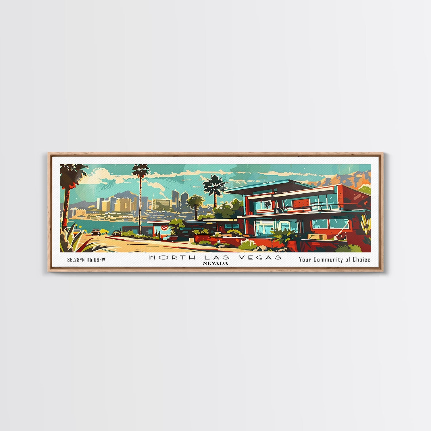 North Las Vegas Nevada Panoramic Wall Art, Mid Century Modern Framed Canvas Print, Retro Pop Art Travel Poster, Home Decor, Office Art, Gift Idea, Living Room Wall Hanging