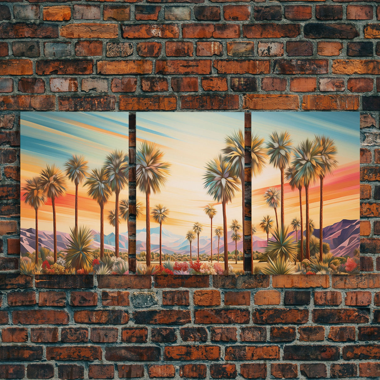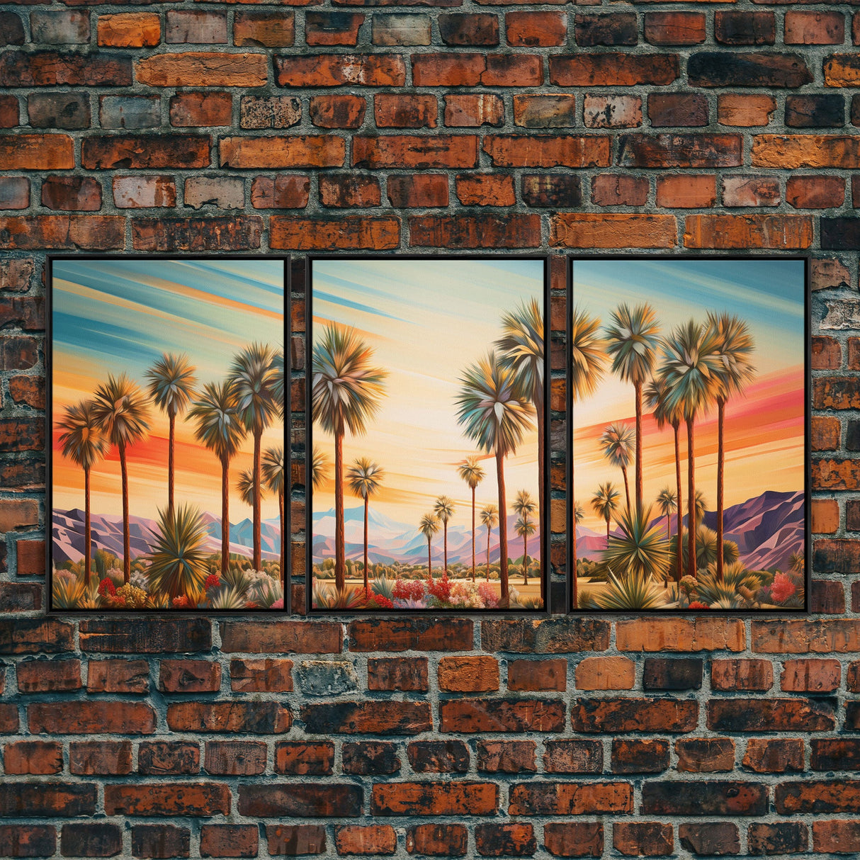Palm Tree Art, Landscape Print, Sunset Wall Art, Canvas Print, Set Of 3 Prints, Wall Art, 3 Piece Wall Art, Wall Art Prints, Ranch Decor
