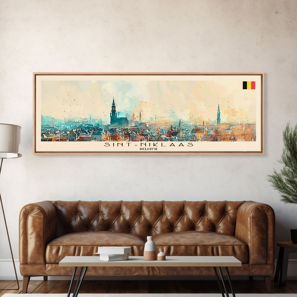 Saint Niklaas Belgium Wall Art, Panoramic Travel Poster, Panoramic Framed Canvas Print, City Wall Art, Wall Hanging Home Decor, Travel Art