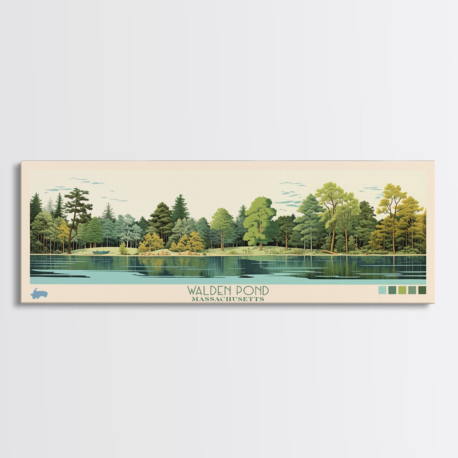Walden Pond, Massachusetts Framed Canvas Print, Panoramic Lake House Decor, Midcentury Modern Art, Pop Art, Travel Poster, Bedroom Wall Art