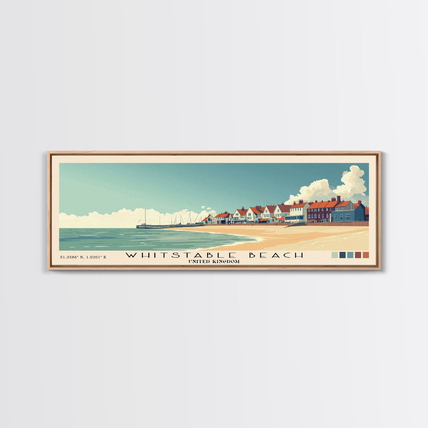 Whitstable beach, United Kingdom Panoramic Print, Vacation Gift, United Kingdom Wall Art, Beach Painting, Beach Decor, Large Wall Art, Wood Frame Art