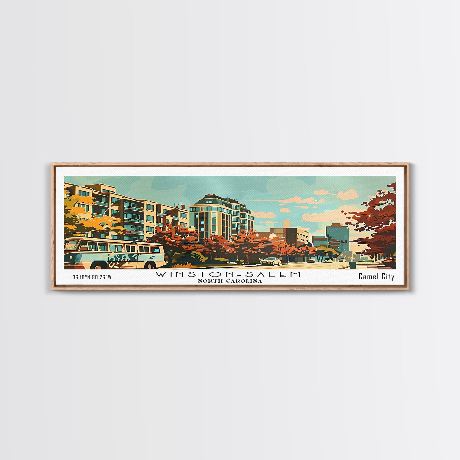 Winston-Salem North Carolina Panoramic Painting, Mid Century Modern Framed Canvas Print, Retro Pop Art Travel Poster, Living Room Wall Art Decor