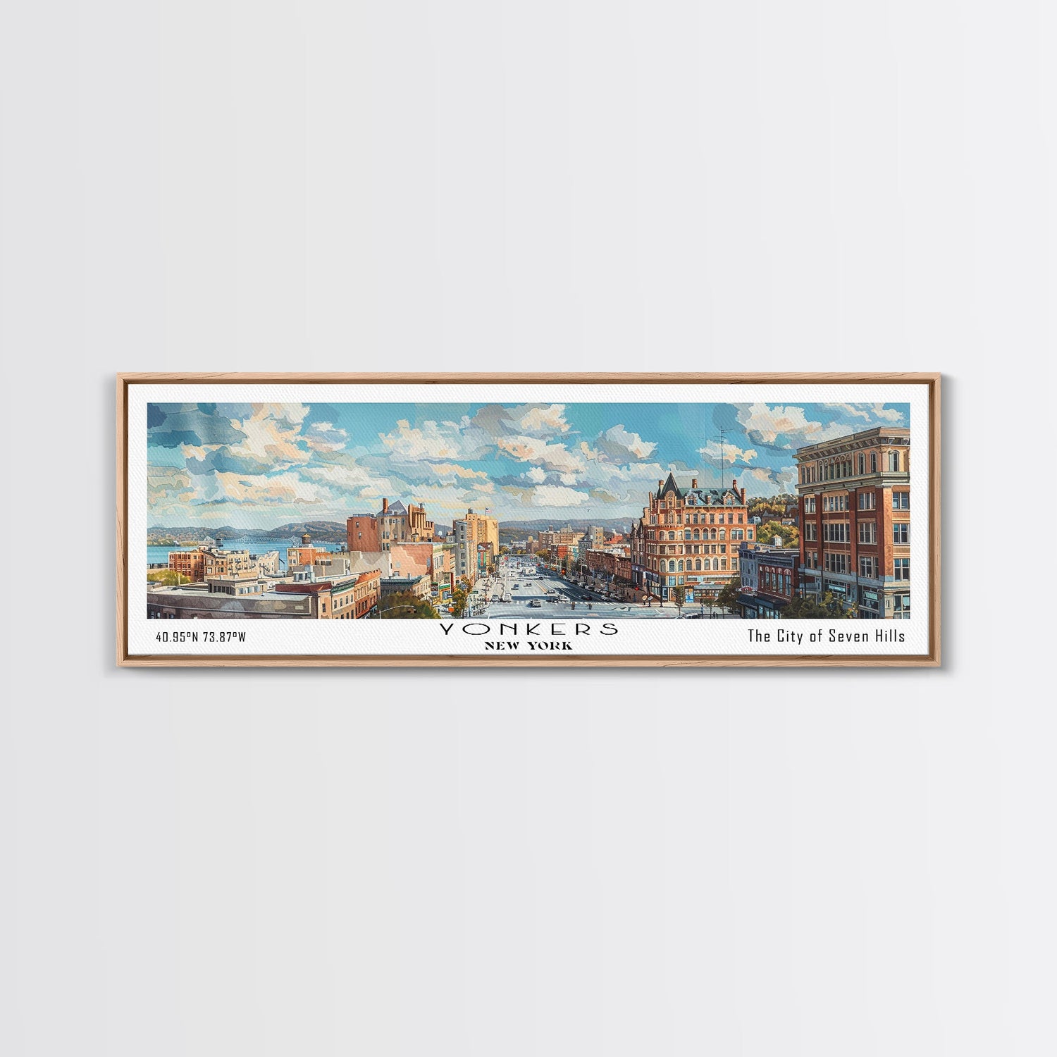 Yonkers New York Panoramic Framed Canvas Print, Retro Style Travel Poster, Artistic Wall Art, Unique Office Decor, Living Room Gift
