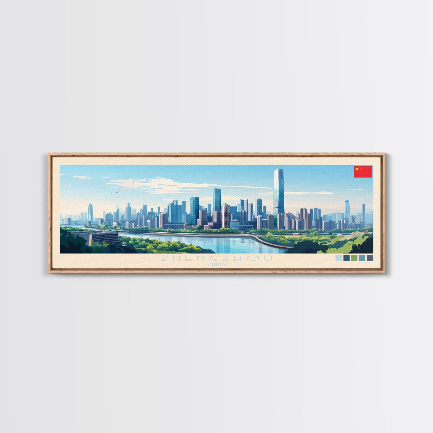 Zhengzhou, China Panoramic Travel Poster Canvas Print, Zhengzhou, China Painting, China Art, Zhengzhou Travel Art, Living Room Painting