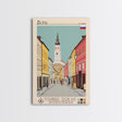 Žilina Slovakia Travel Poster Framed Canvas Print, Midcentury Modern Art, Pop Art Decor, Living Room Wall Art, Vacation Gift, Scenic Print