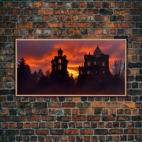 Halloween haunted house canvas print, cottagecore, spooky victorian house art, fine art print