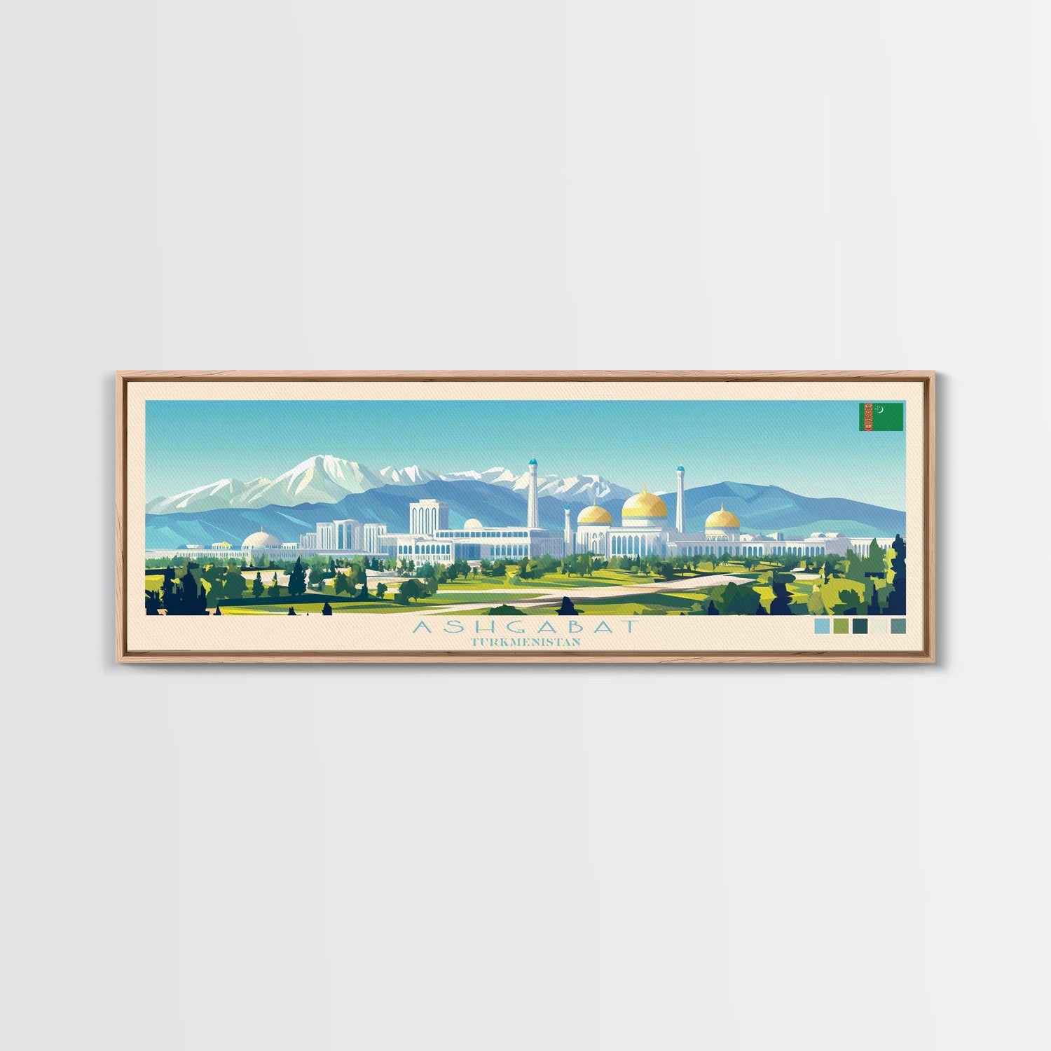 Ashgabat, Turkmenistan Panoramic Travel Poster Canvas Print, Ashgabat, Turkmenistan Painting, Turkmenistan Art, Ashgabat Panoramic Travel Art, Travel Painting