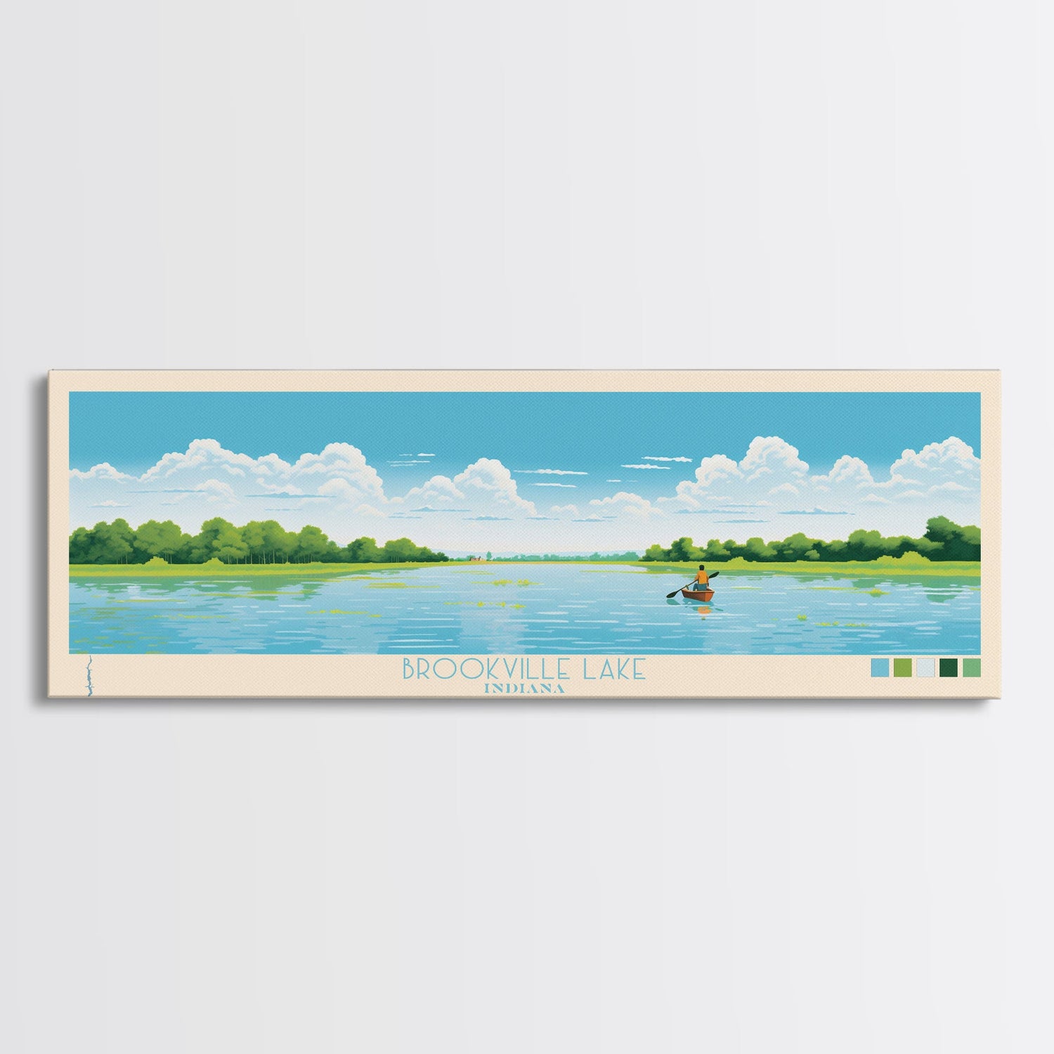 Brookville Lake Indiana Framed Canvas Print, Midcentury Modern Panoramic Wall Art, Living Room Decor, Pop Art, Travel Poster Art, Nature Painting