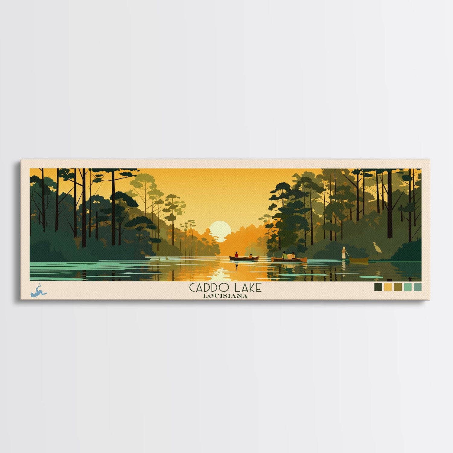 Caddo Lake Louisiana Framed Canvas Print, Pop Art Panoramic Travel Poster, Midcentury Modern, Wall Art, Scenic Nature Painting, Bedroom Decor