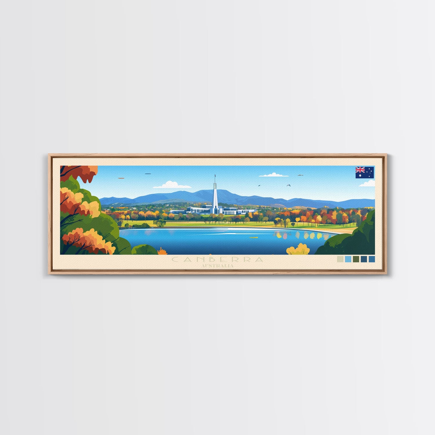 Canberra, Australia Panoramic Travel Poster Canvas Print, Canberra, Australia Painting, Australia Art, Canberra Travel Art, Guest Room Painting