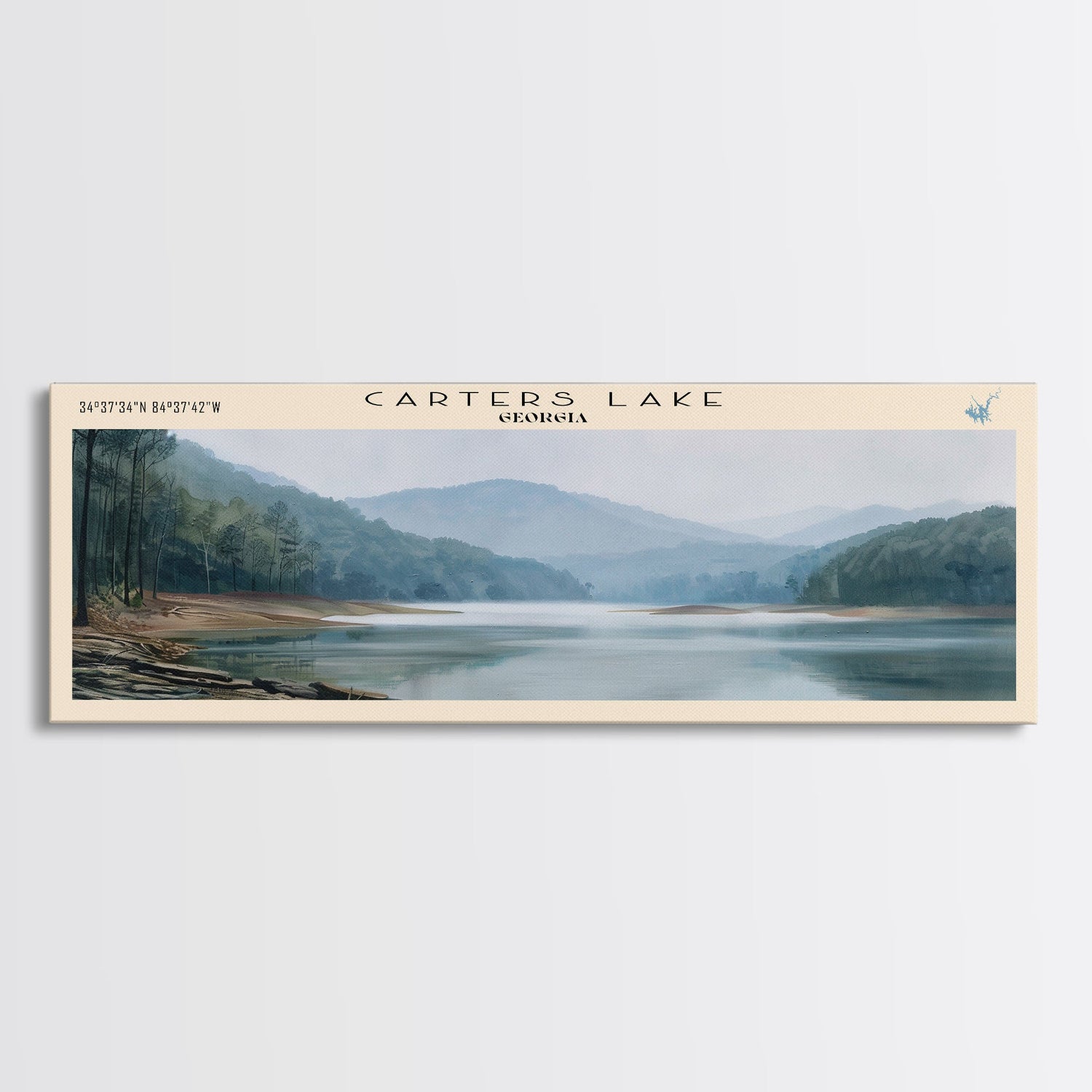 Carters Lake Georgia Framed Canvas Print, Panoramic Lake House Decor, Wall Art, Travel Poster, Rustic Lake Painting, Nature Art