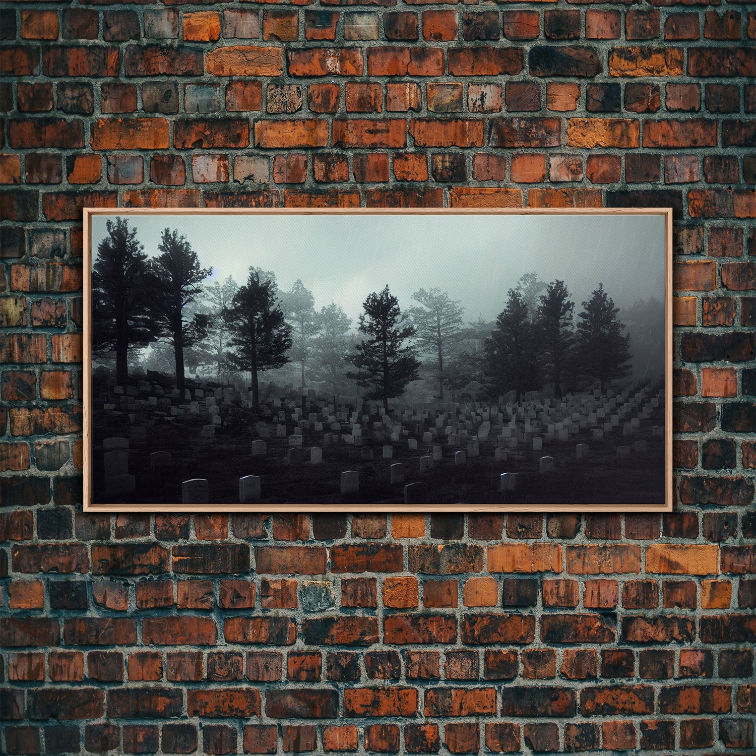 Creepy Haunted Cemetery, Spooky Halloween Art, Graveyard, ready to hang canvas print wall art, Black And White Art, Halloween Decor
