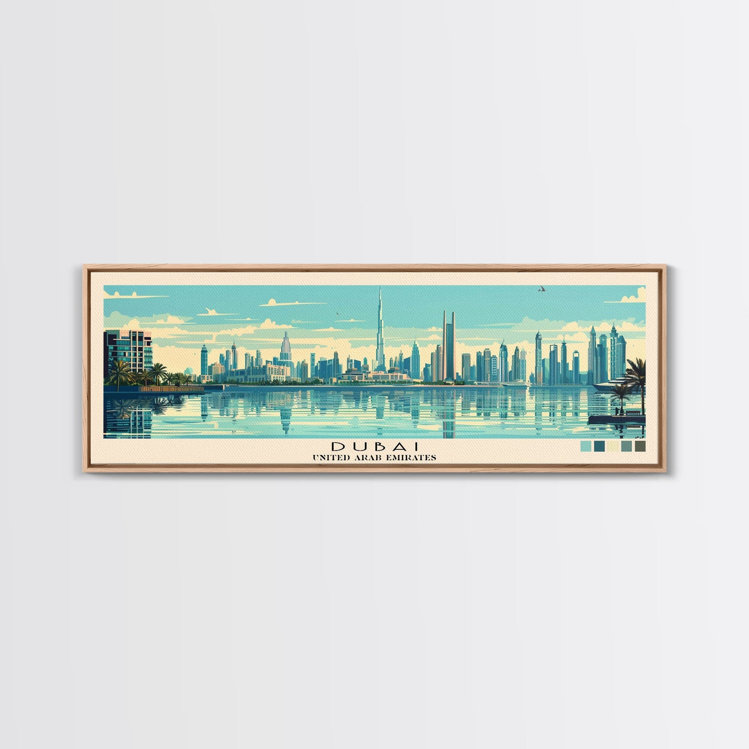 Dubai, United Arab Emirates Panoramic Canvas Print, Dubai, United Arab Emirates Painting, United Arab Emirates Art, Dubai Travel Poster, Travel Art, Housewarming Gift