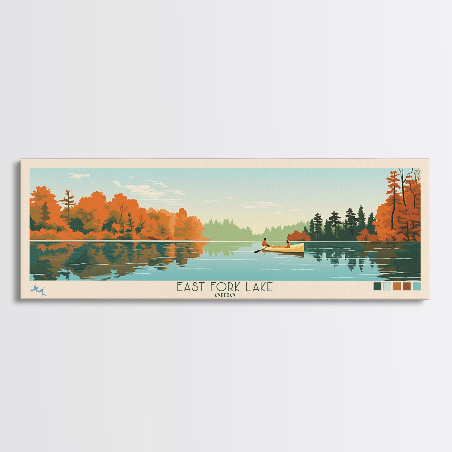 East Fork Lake Ohio Framed Canvas Print, Panoramic Wall Art, Midcentury Modern, Pop Art, Bedroom Decor, Travel Poster, Artistic Lake Painting