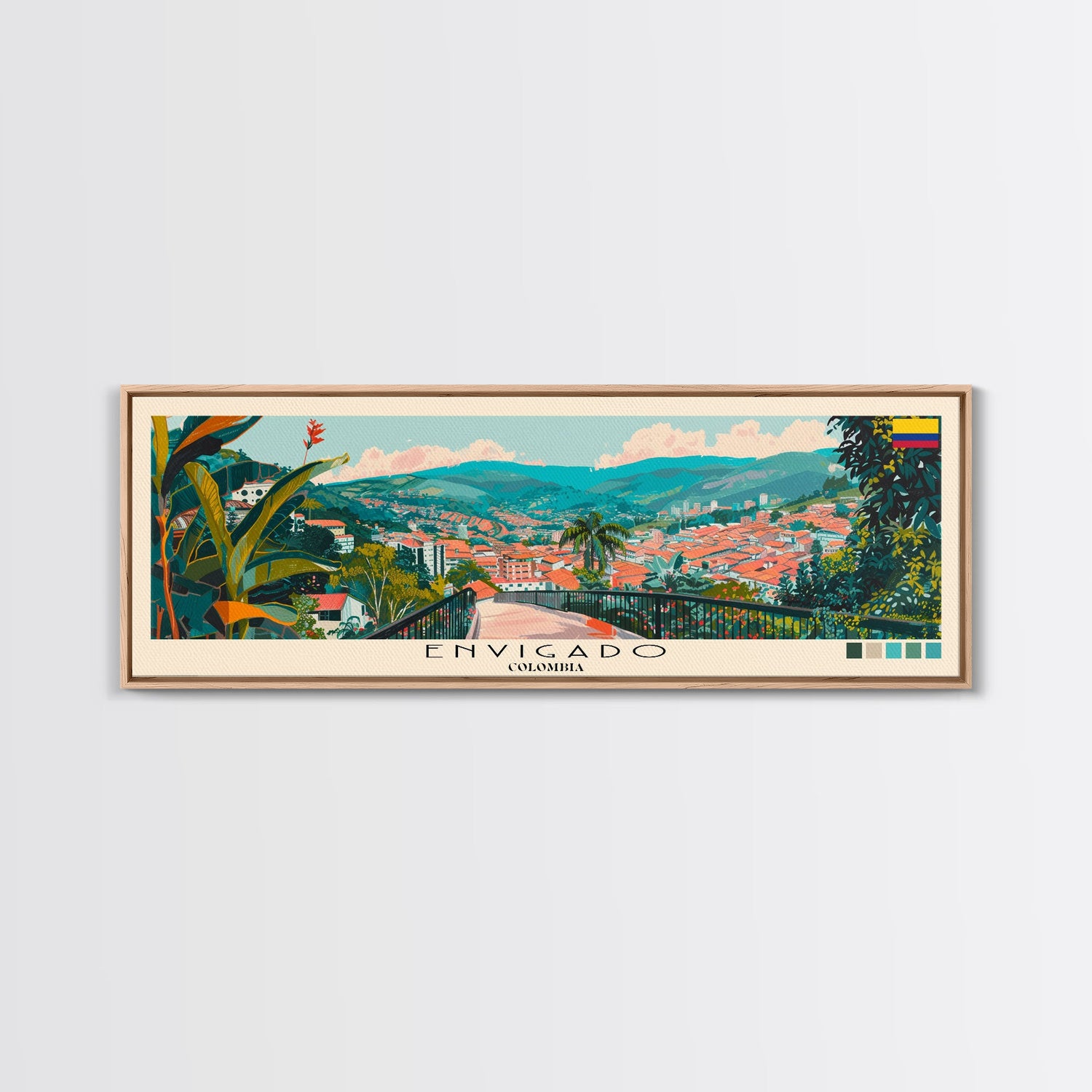 Envigado, Colombia Panoramic Canvas Print, Envigado, Colombia Painting, Colombia Art, Envigado Travel Poster, Travel Art, Guest Room Painting
