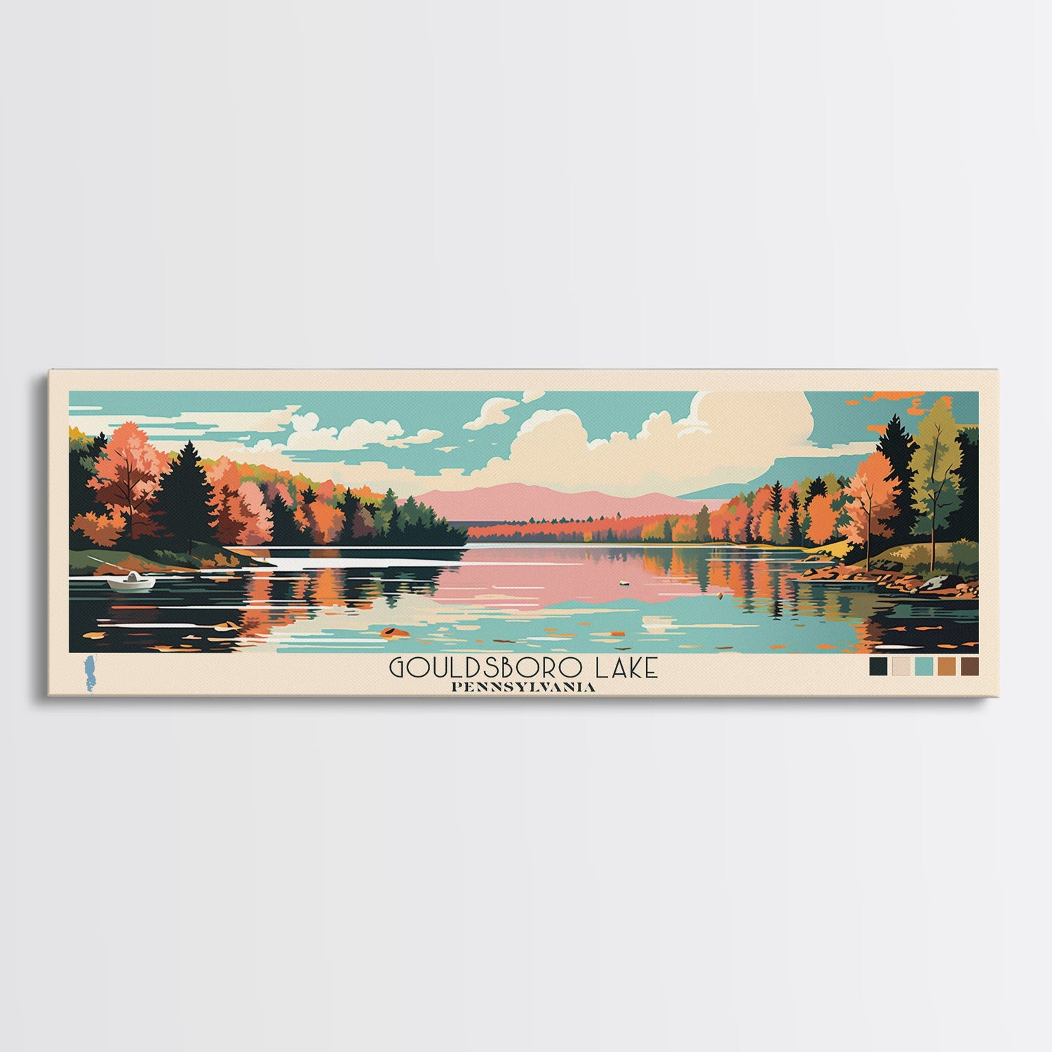 Gouldsboro Lake Pennsylvania Framed Canvas Print, Panoramic Wall Art, Midcentury Modern, Pop Art, Living Room Wall Art, Travel Poster, Nature Painting, Home Decor