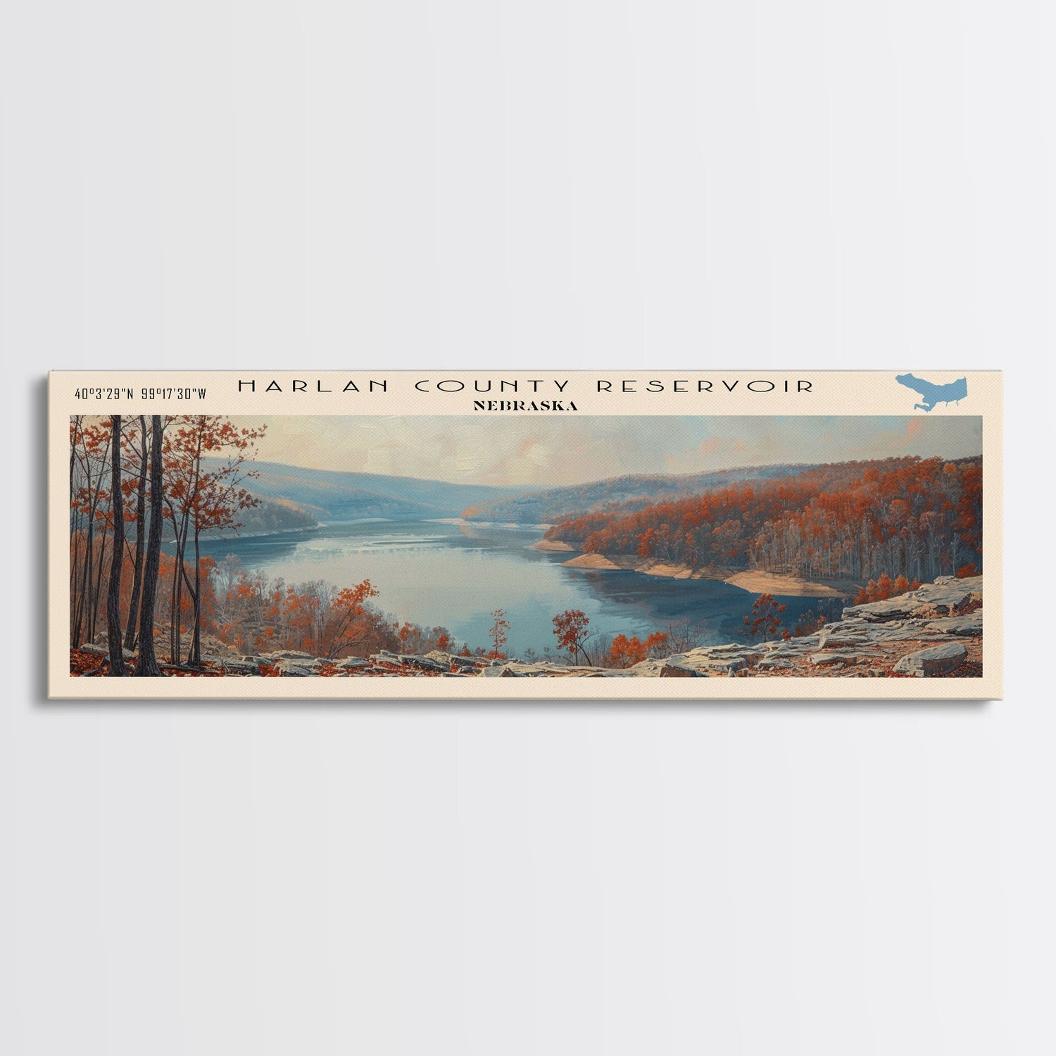 Harlan County Reservoir Nebraska Framed Canvas Print, Lake House Art, Panoramic Wall Art, Travel Poster, Scenic Lake Painting, Home Decor