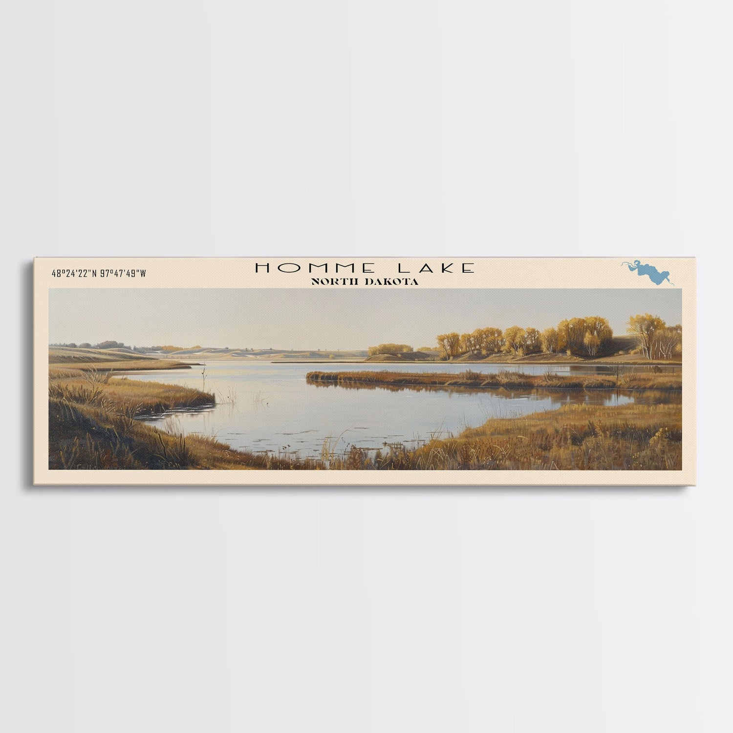 Homme Lake North Dakota Framed Canvas Print, Lake House Decor, Panoramic Wall Art, Travel Poster, Beautiful Lake Painting, Nature Art