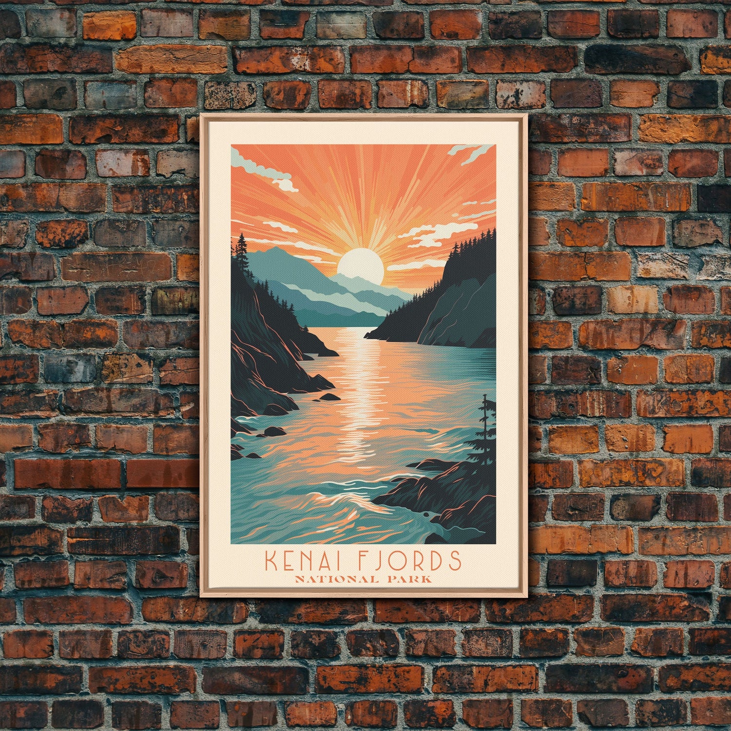 Kenai Fjords National Park, Alaska Travel Art, National Park Print, Minimalist Travel Art, Midcentury Modern Retro Style Landscape
